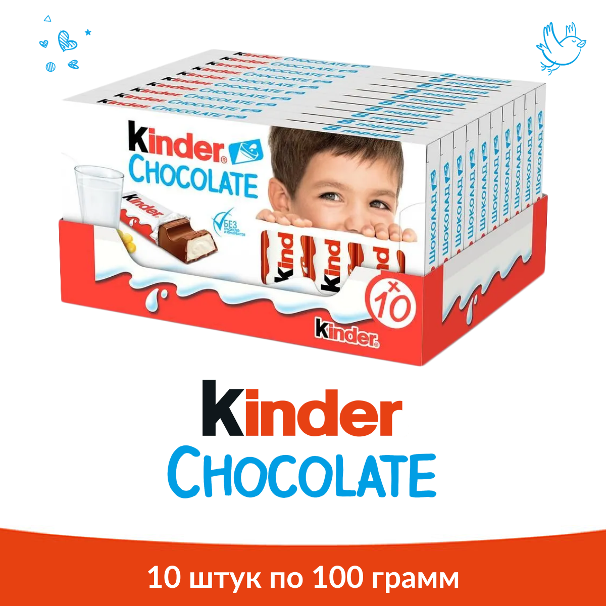 Ниже Вы можете прочитать отзывы на Шоколад Молочный Kinder Chocolate с молочной начинкой, порционный, 10 шт. по 100 г, ознакомится с подробными характеристиками, посмотреть интересные обзоры и фотографии на Шоколад Молочный Kinder Chocolate с молочной начинкой, порционный, 10 шт. по 100 г.