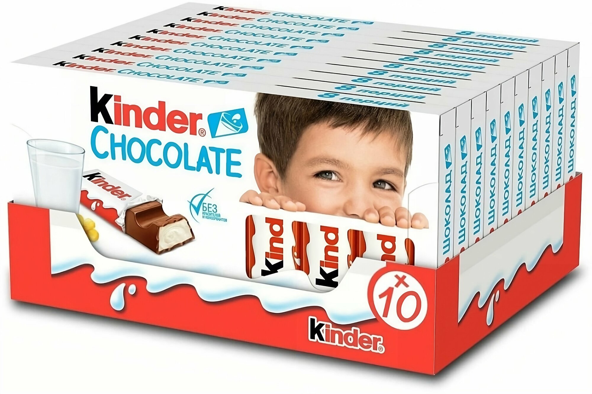 Купить Шоколад Молочный Kinder Chocolate с молочной начинкой, порционный, 10 шт. по 100 г