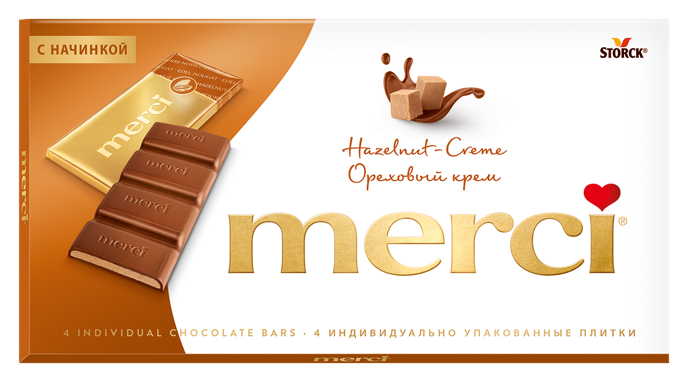 Шоколад молочный MERCI Ореховый крем, 112г интересное:
