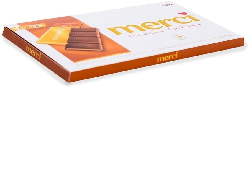 Merci, шоколад молочный с ореховым кремом, шоколадные плитки 112г. Мерси, произведено в Германии