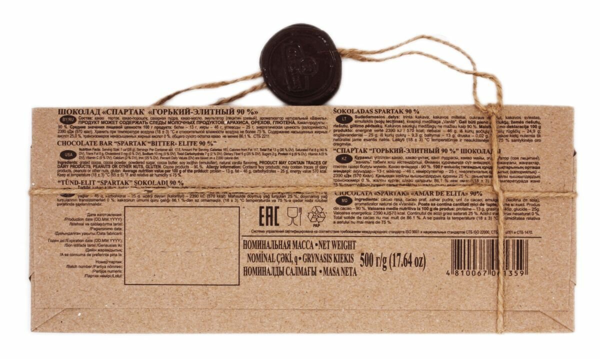 Шоколад Спартак горький элитный 90% крафт 500г/Спартак интересное: