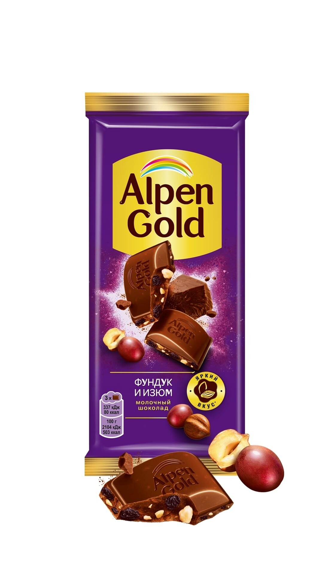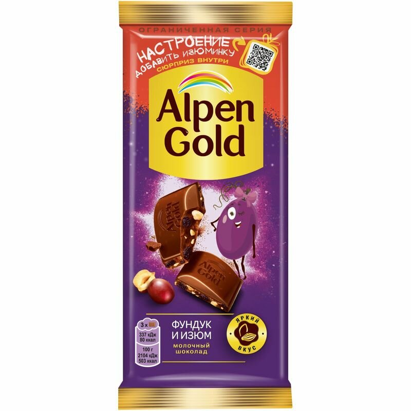 Шоколад Alpen Gold молочный фундук и изюм 80г интересное: