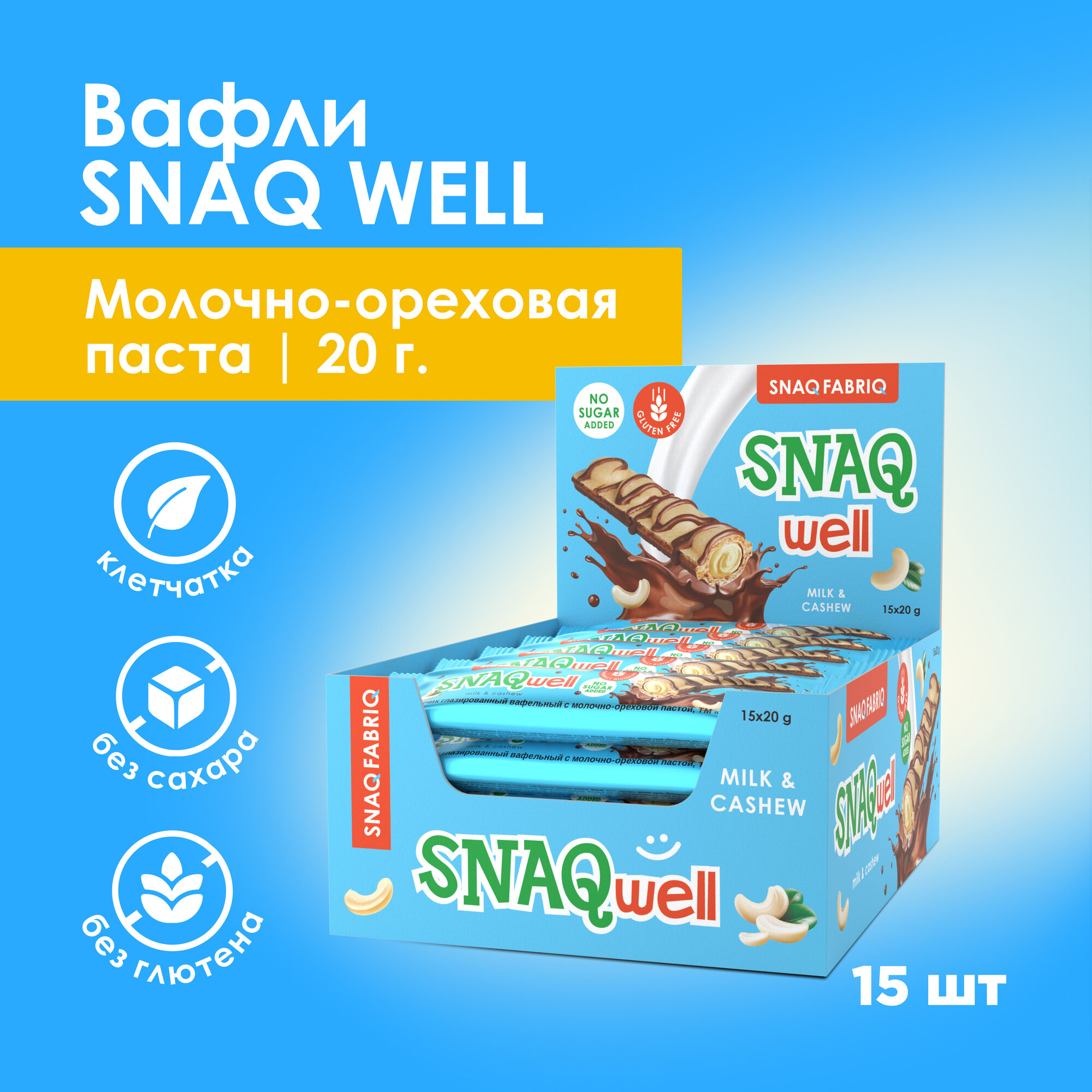 Купить Вафельный батончик в шоколаде Snaq Fabriq Snaq Well Без глютена и сахара с молочно-ореховой начинкой, 20 гр (15 шт)