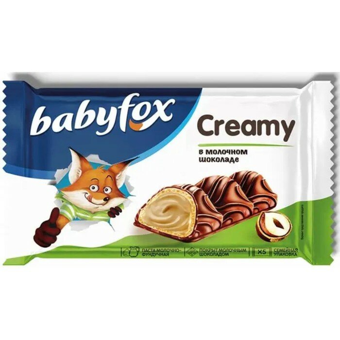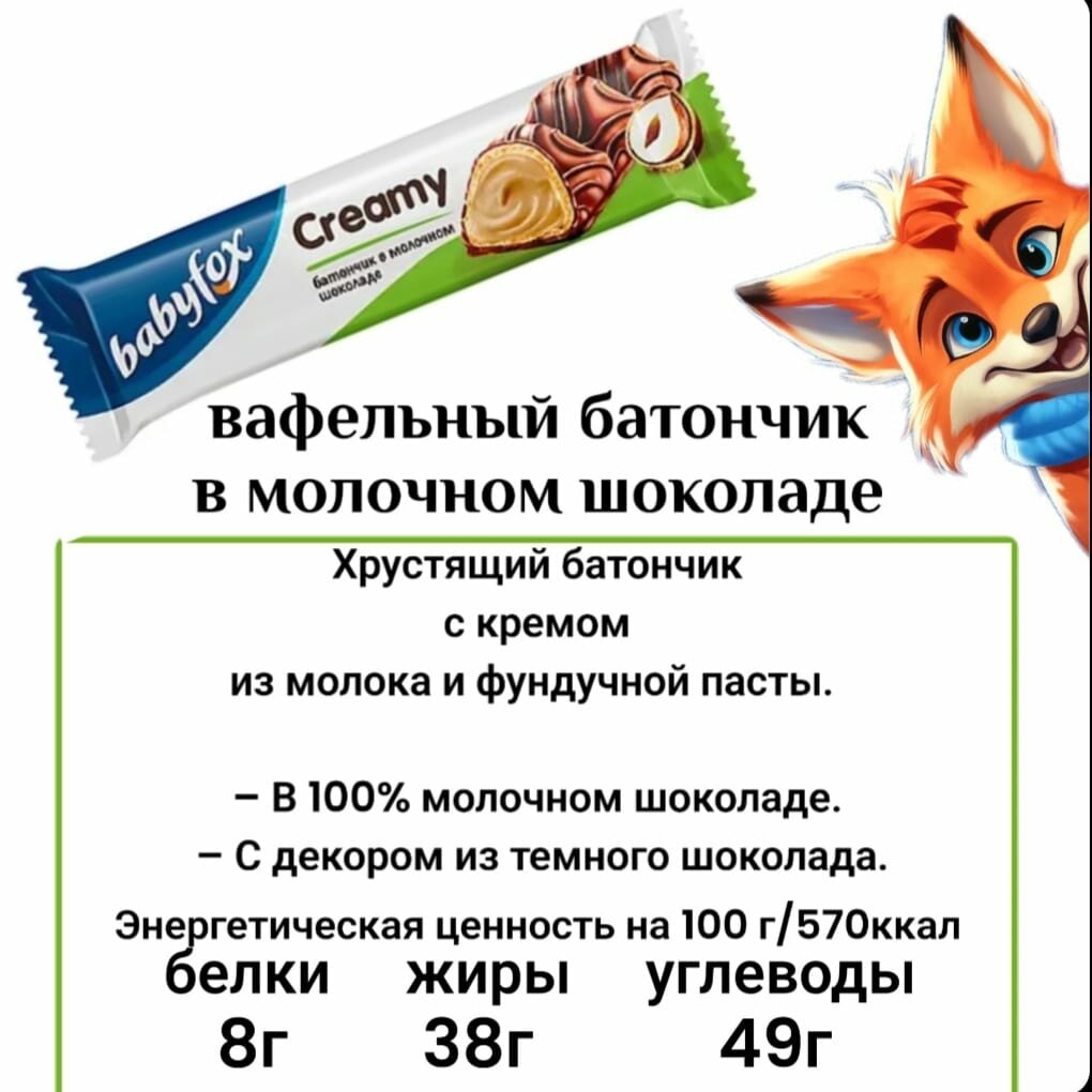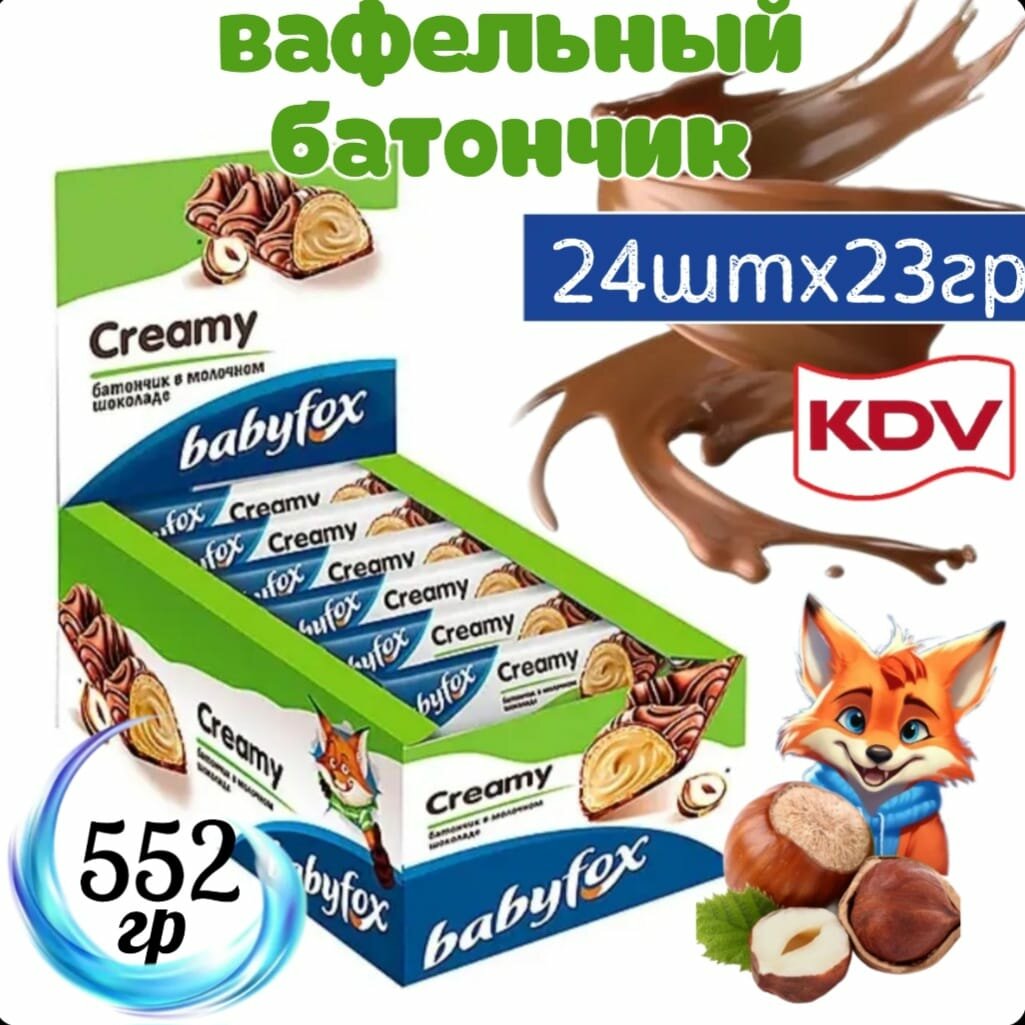 Вафельный батончик BabyFox CREAMY (Бэби Фокс) в молочном шоколаде, 24 штуки по 23 грамма