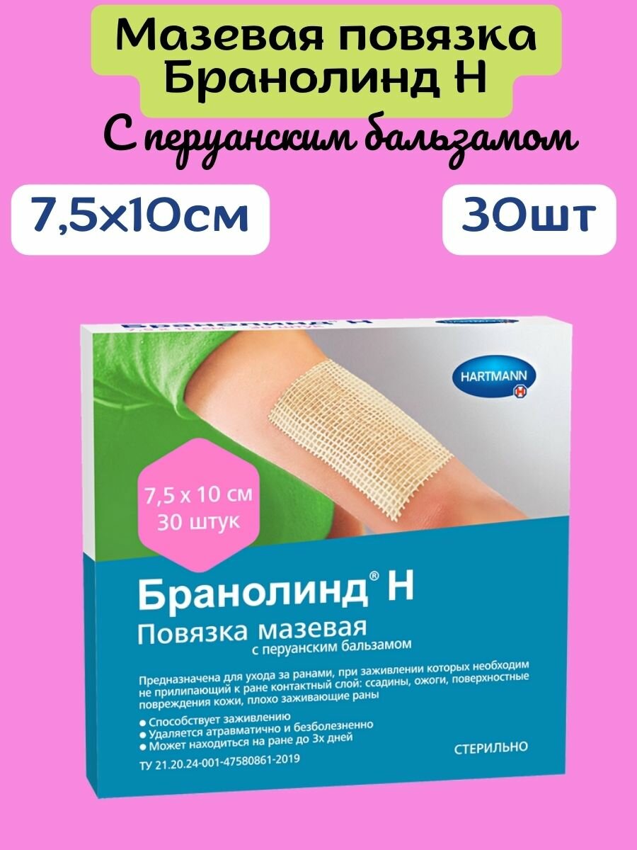 Повязка Бранолинд Н с перуанским бальзамом 7,5х10 см 30 шт