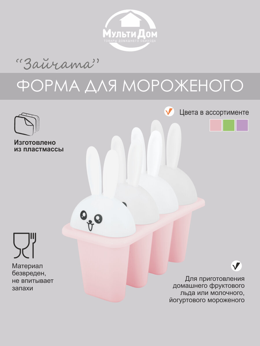 Формы для мороженого "Зайчата". Размер 16х7х14 см. 3цв