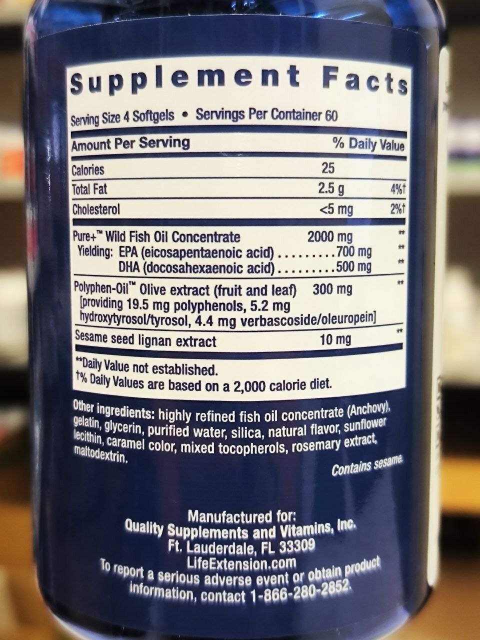 Life Extension Super Omega-3 EPA/DHA Fish Oil Sesame Lignans and Olive Extract 120 sgels
