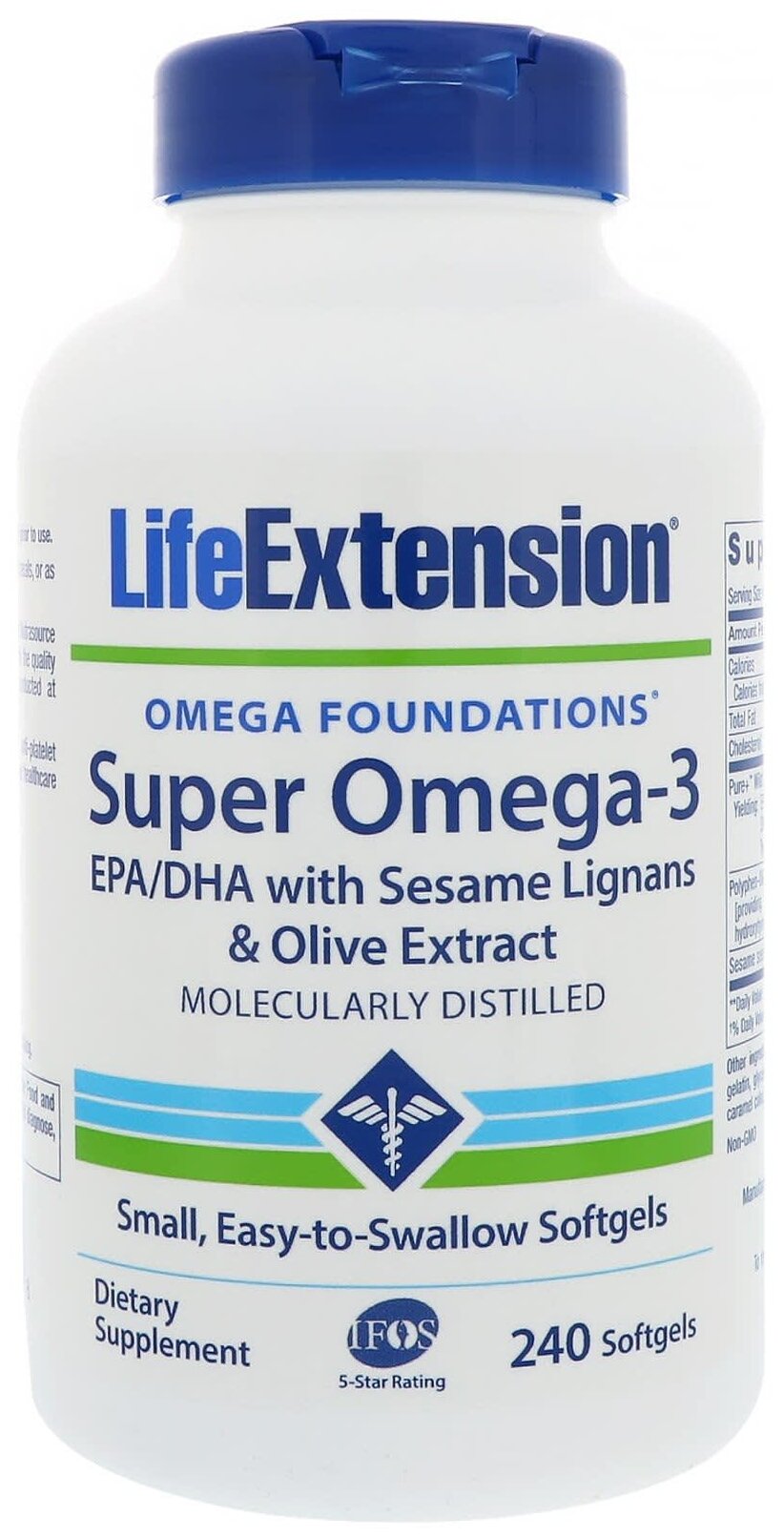 Life Extension Super Omega-3 EPA/DHA Fish Oil Sesame Lignans and Olive Extract 240 sgels