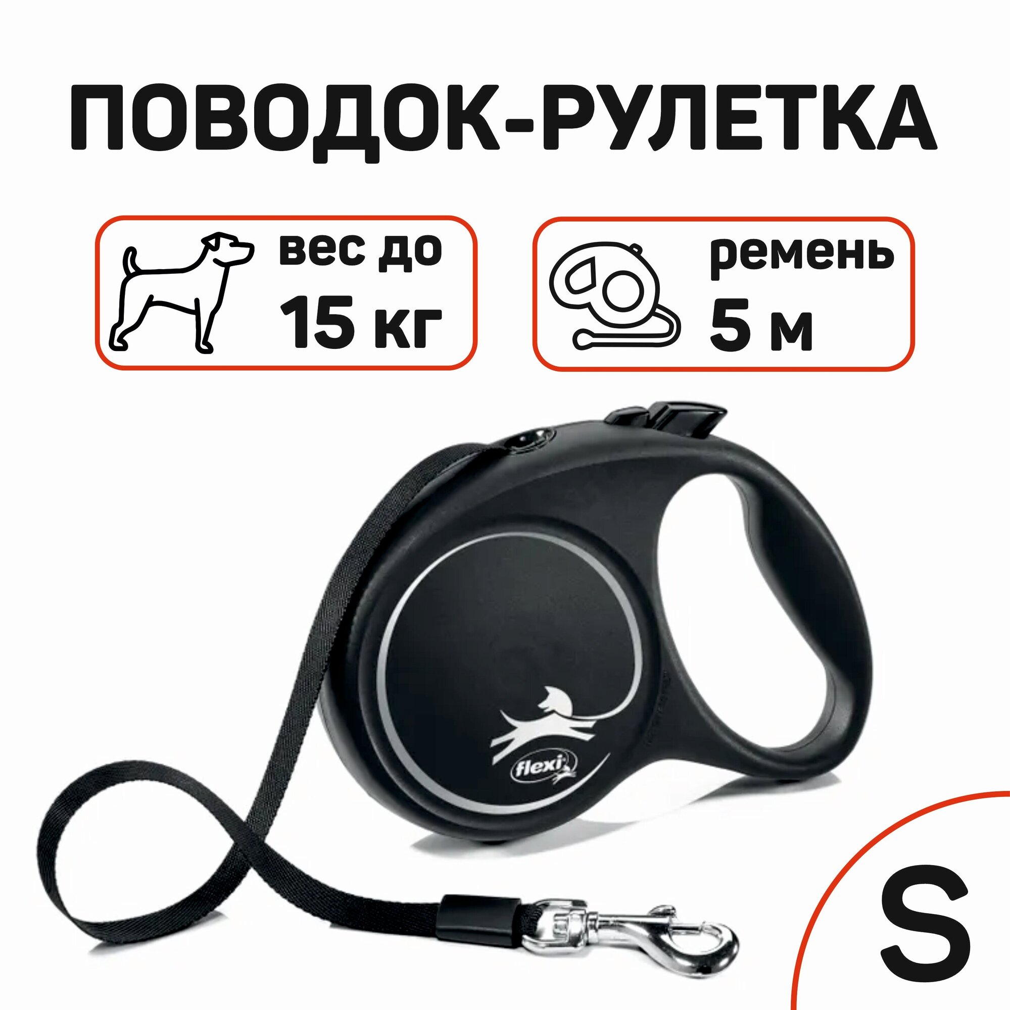Поводок-рулетка для собак Flexi New Classic S ленточный