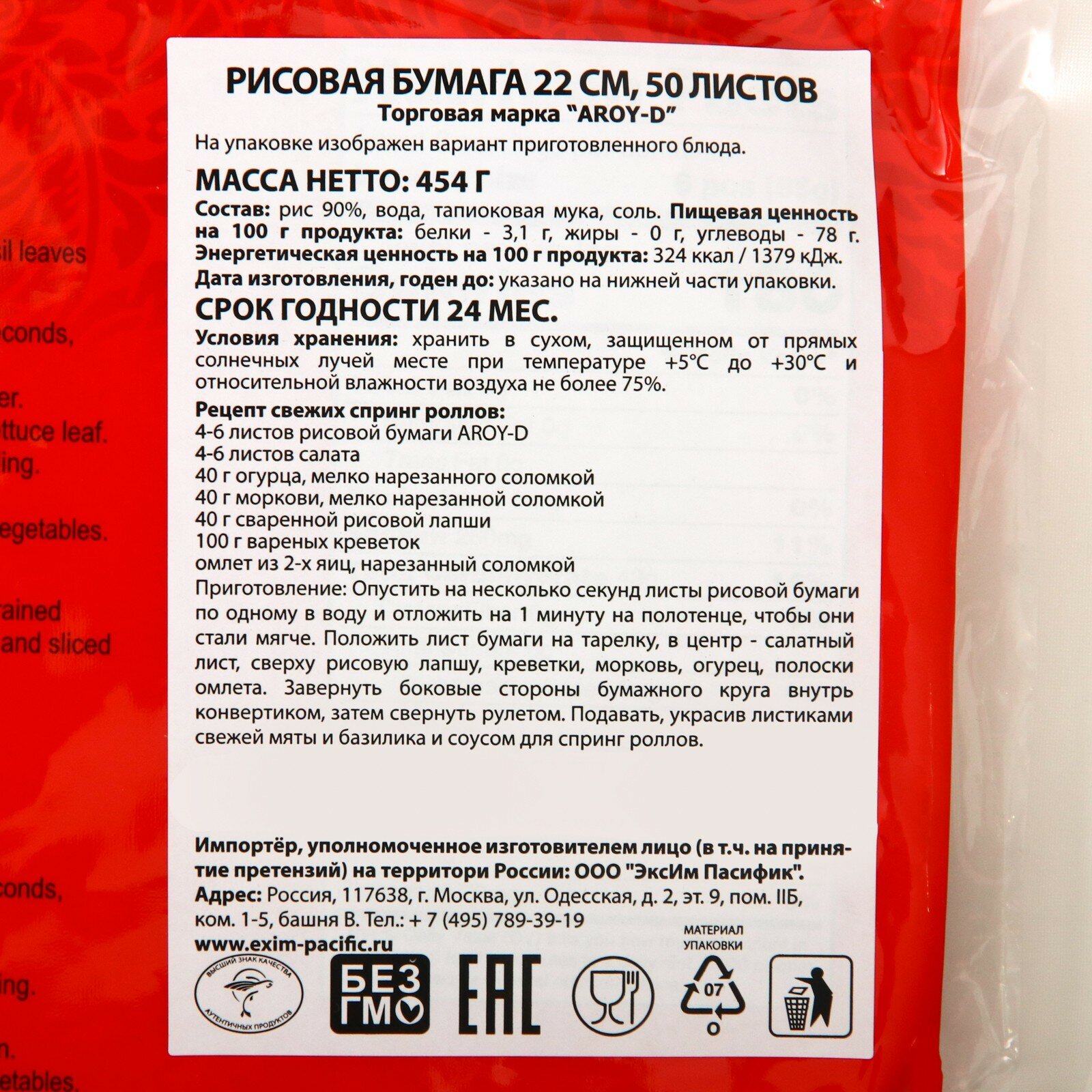 Рисовая бумага Aroy-D, круглая, 22 см, 50 листов, Таиланд, 454 г