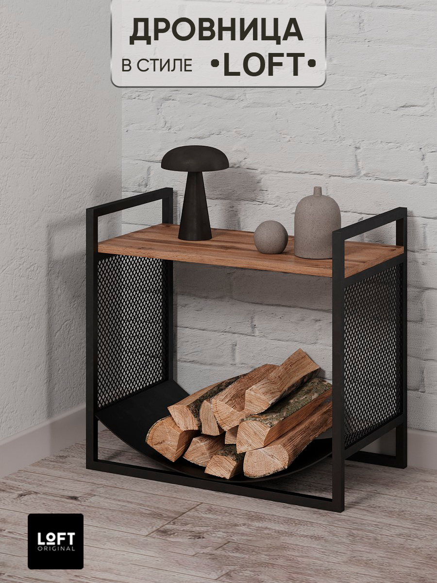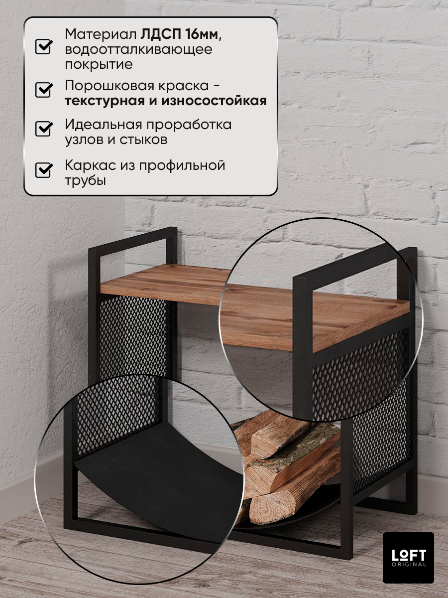 Дровница металлическая Loft Original для дров для бани с полкой