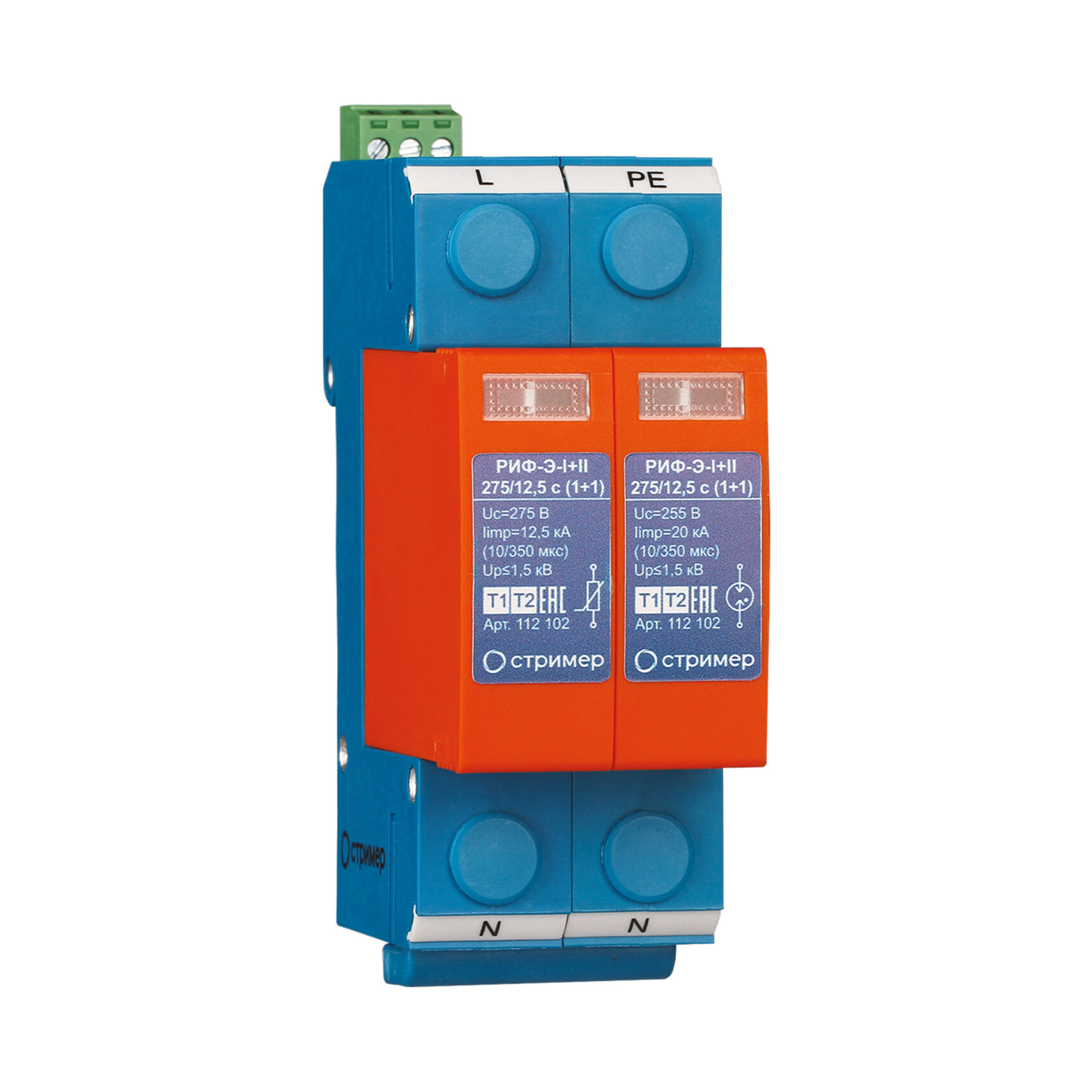 Устройство защиты от импульсных перенапряжений РИФ-Э-I+II 275/12,5 c (1+1) (112 102), стример 112102 (1 шт.)
