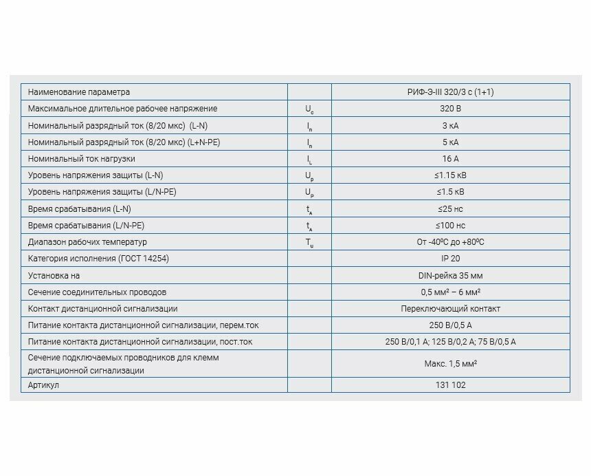Устройство защиты от импульсных перенапряжений УЗИП РИФ-Э-III 320/3 с (1+1) Стример (131 102)