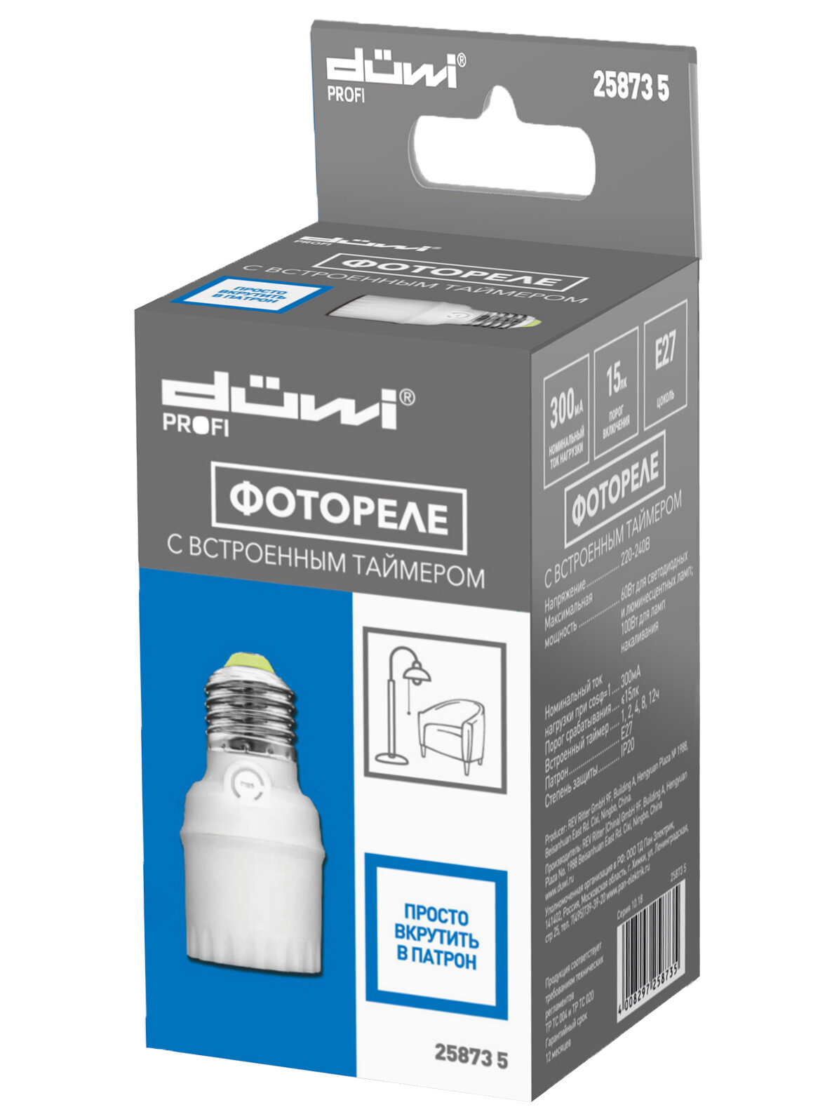 Фотореле FR-04 патрон E27 со встроенным таймером отключения, 5-15Лк, 100Вт, düwi интересное: