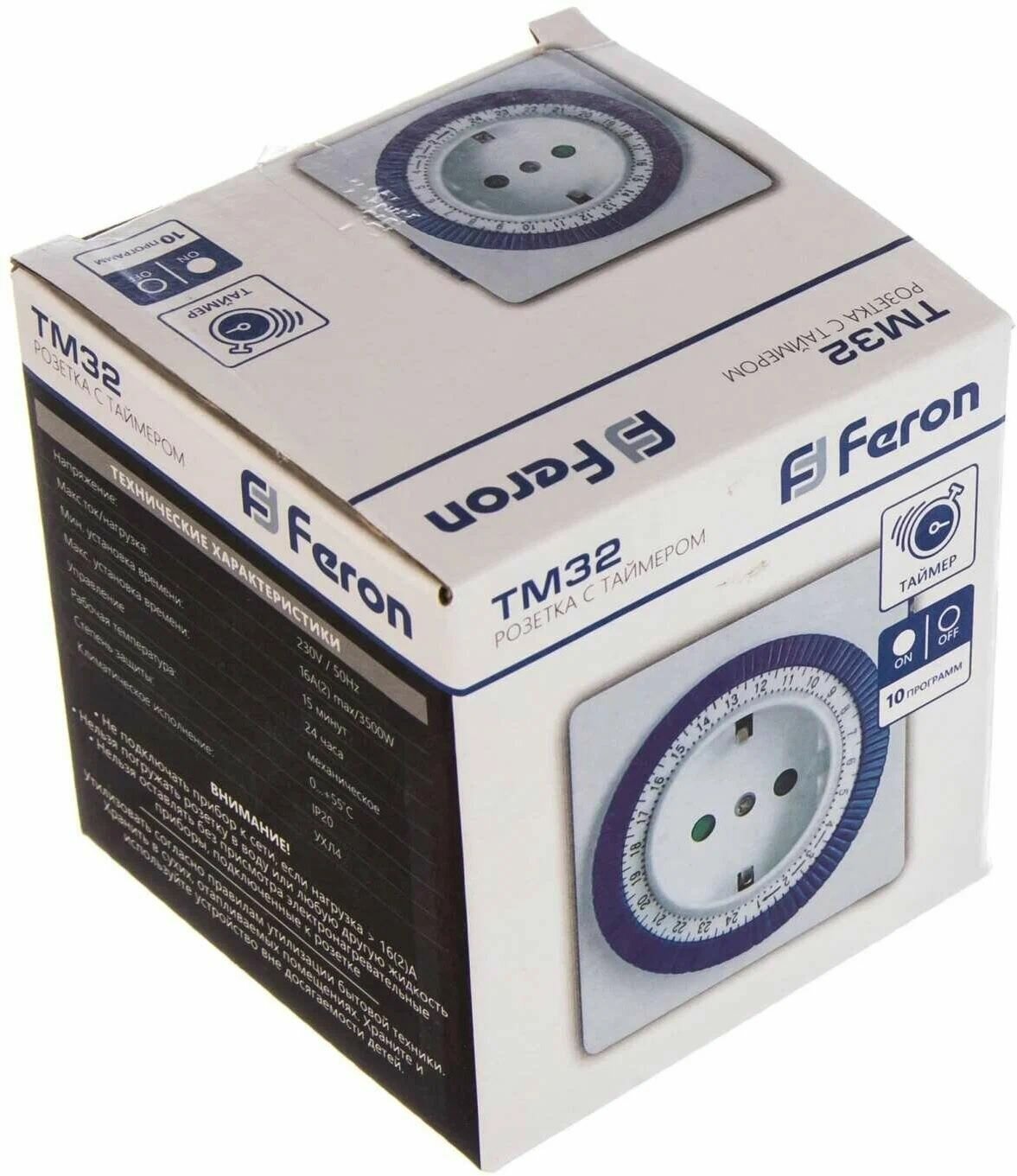 Розетка с таймером Feron TM32, суточная, мощность 3500W/16A, 23203