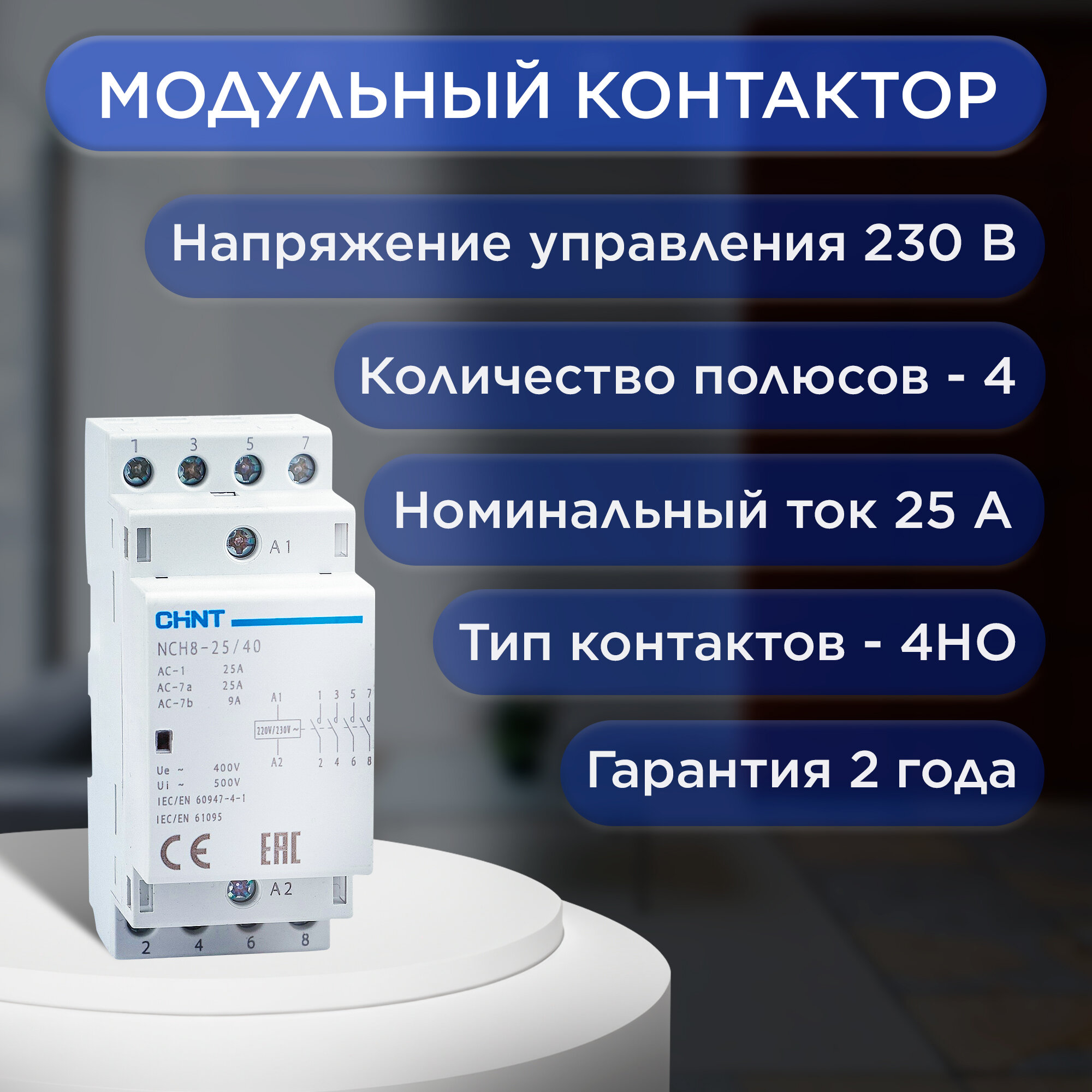 CHINT Контактор модульный NCH8-25/40 25A 4НО AC220/230В 50Гц (R) интересное: