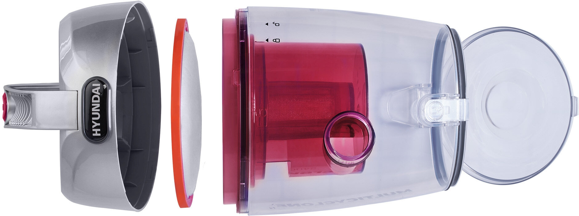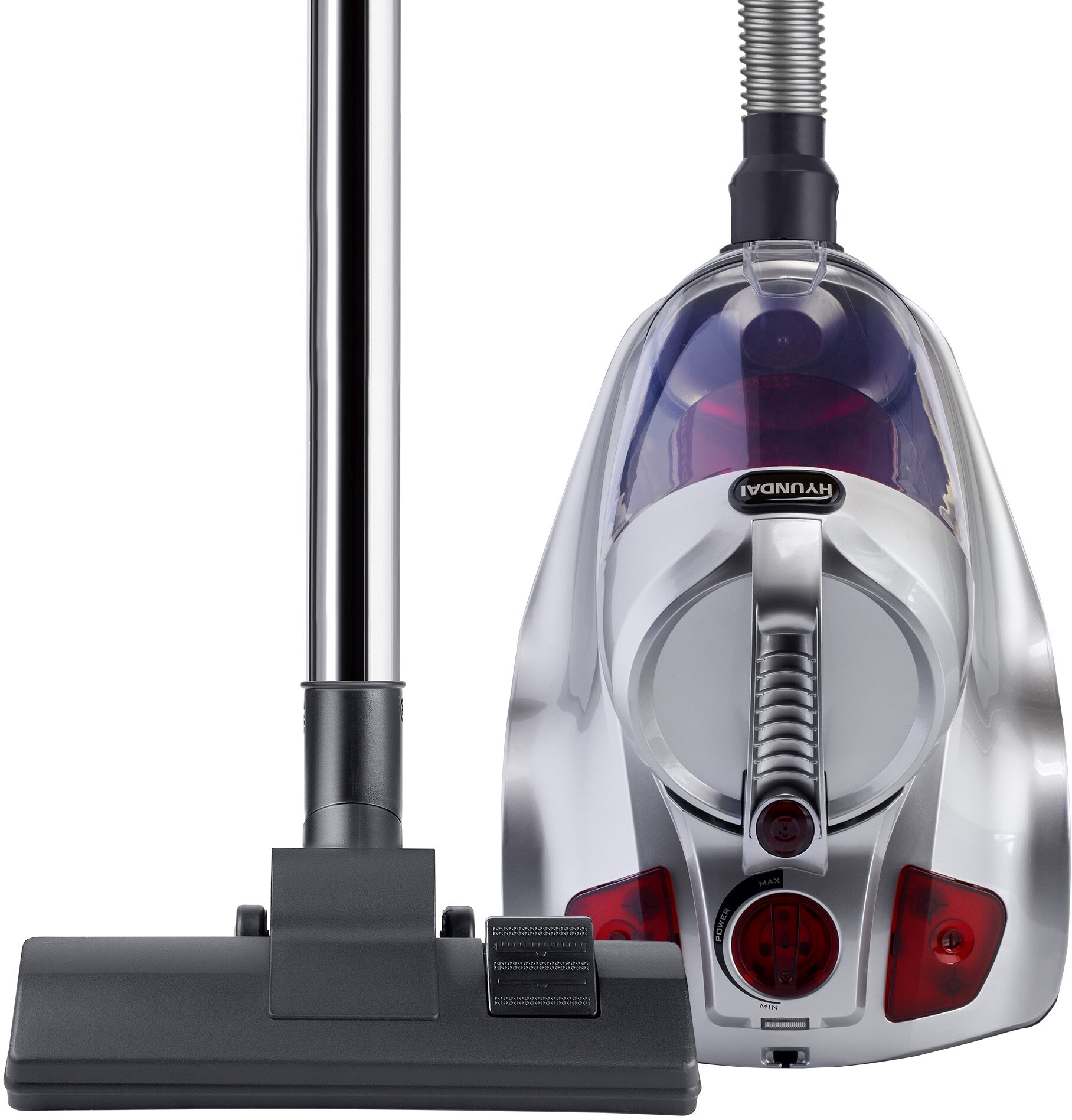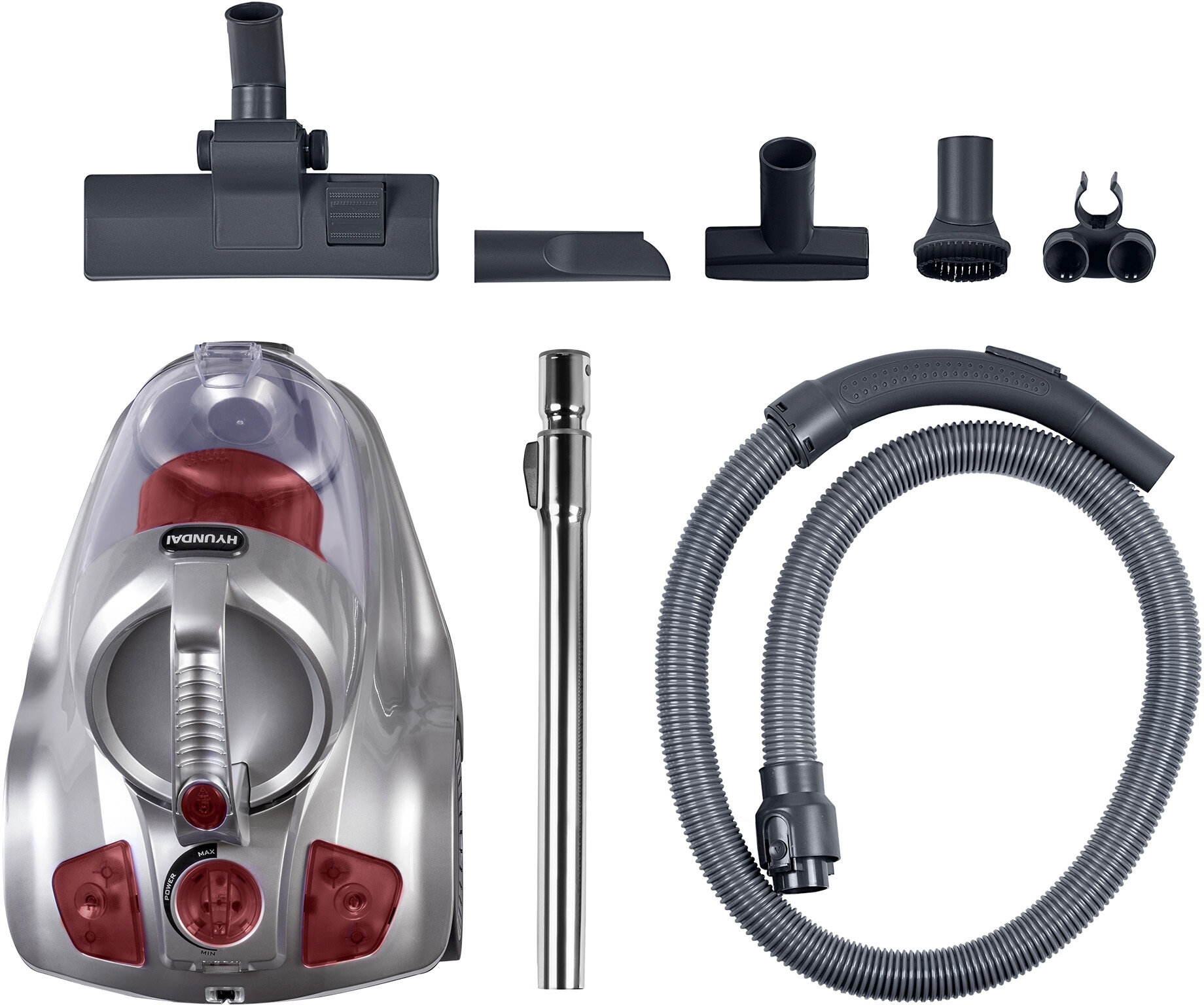 Пылесос HYUNDAI HYV-C4570, серебристо-красный, 2400W/380W