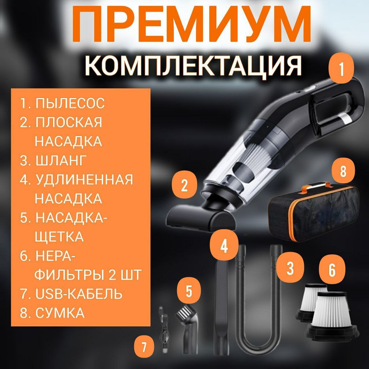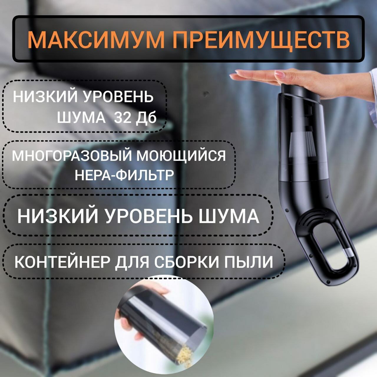 Автомобильный пылесос беспроводной, с сумкой, мощный, аккумуляторный, ручной 130 Вт. интересное: