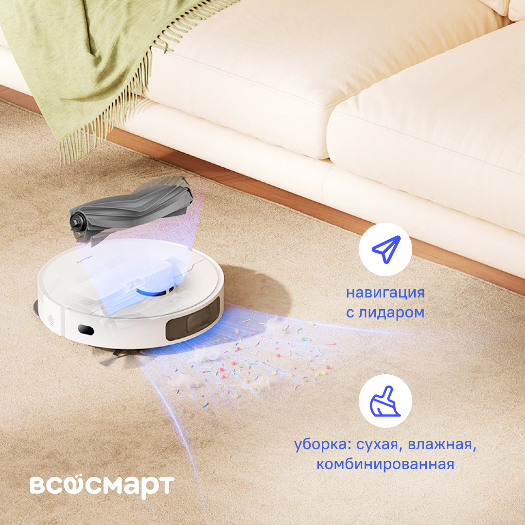| Дополнительная информация | Дистанционное управление через приложение; Голосовые оповещения; Автоматический поиск зарядного устройства; Составление плана помещения; HEPA фильтр; Индикатор степени зарядки; Индикатор включения; Уборка вдоль стены; Датчики препятствий; Рекомендуемая площадь - 145 м² |