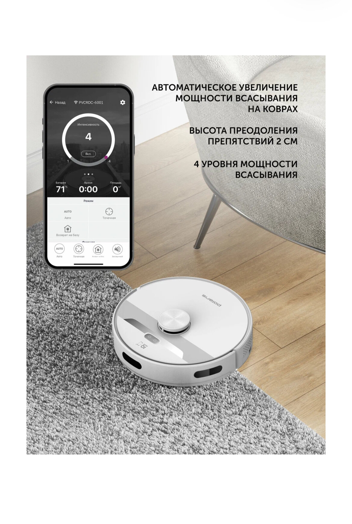 робот-пылесос POLARIS PVCR6001 30Вт контейнер 0,4л Wi-Fi IQ Home белый