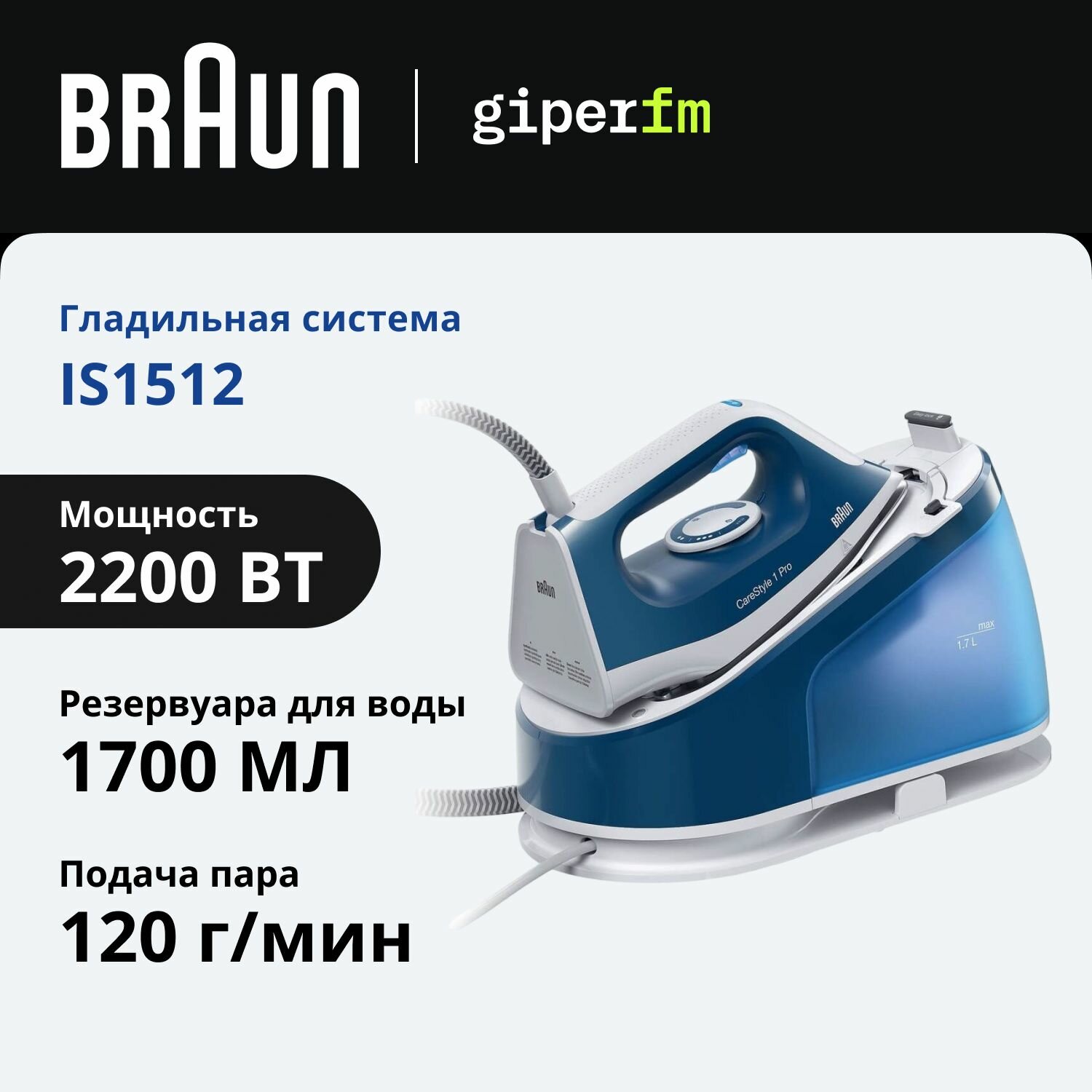 Гладильная система Braun IS1512BL, синий, 2200 Вт, паровой удар, защита от накипи, самоочистка