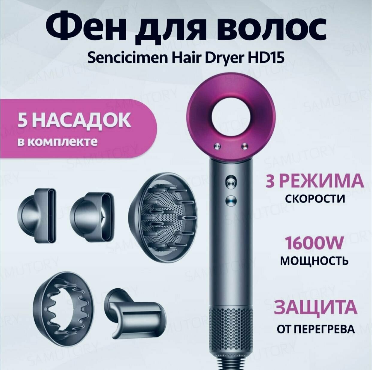 Фен для волос SenCiciMen Hair Dryer HD15, фиолетовый|/Гарантия качества