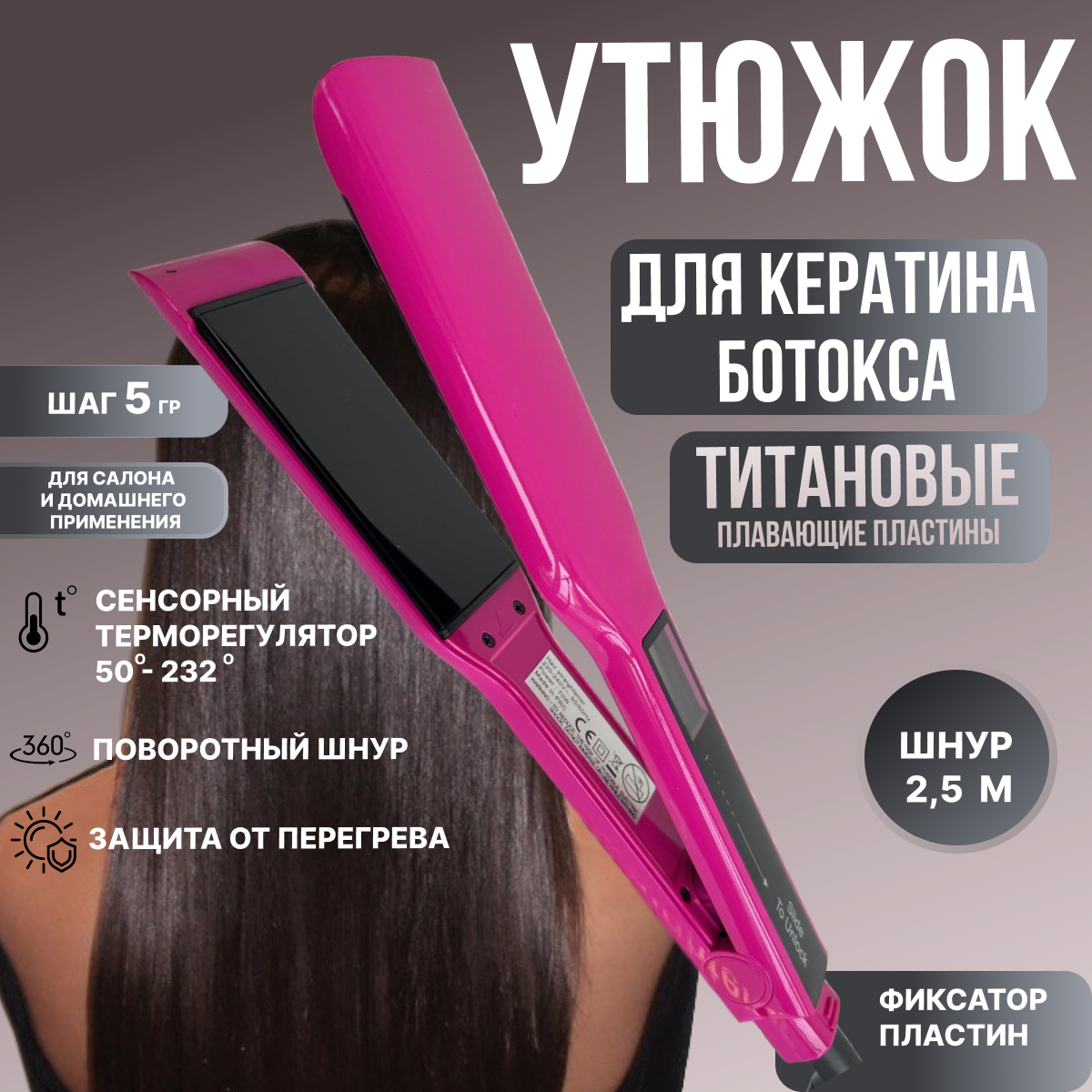 Выпрямитель Утюжок для кератина ботокса широкие титановые пластины Professional Hair , розовый блеск интересное: