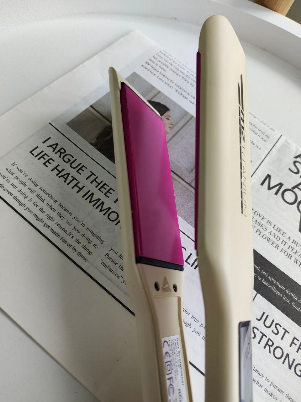 Утюжок MZ Titanium молочный, розовые пластины, матовый интересное: