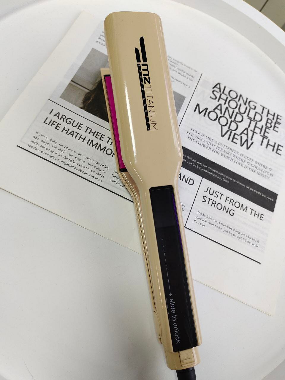 Утюжок MZ Titanium молочный, розовые пластины, глянец интересное: