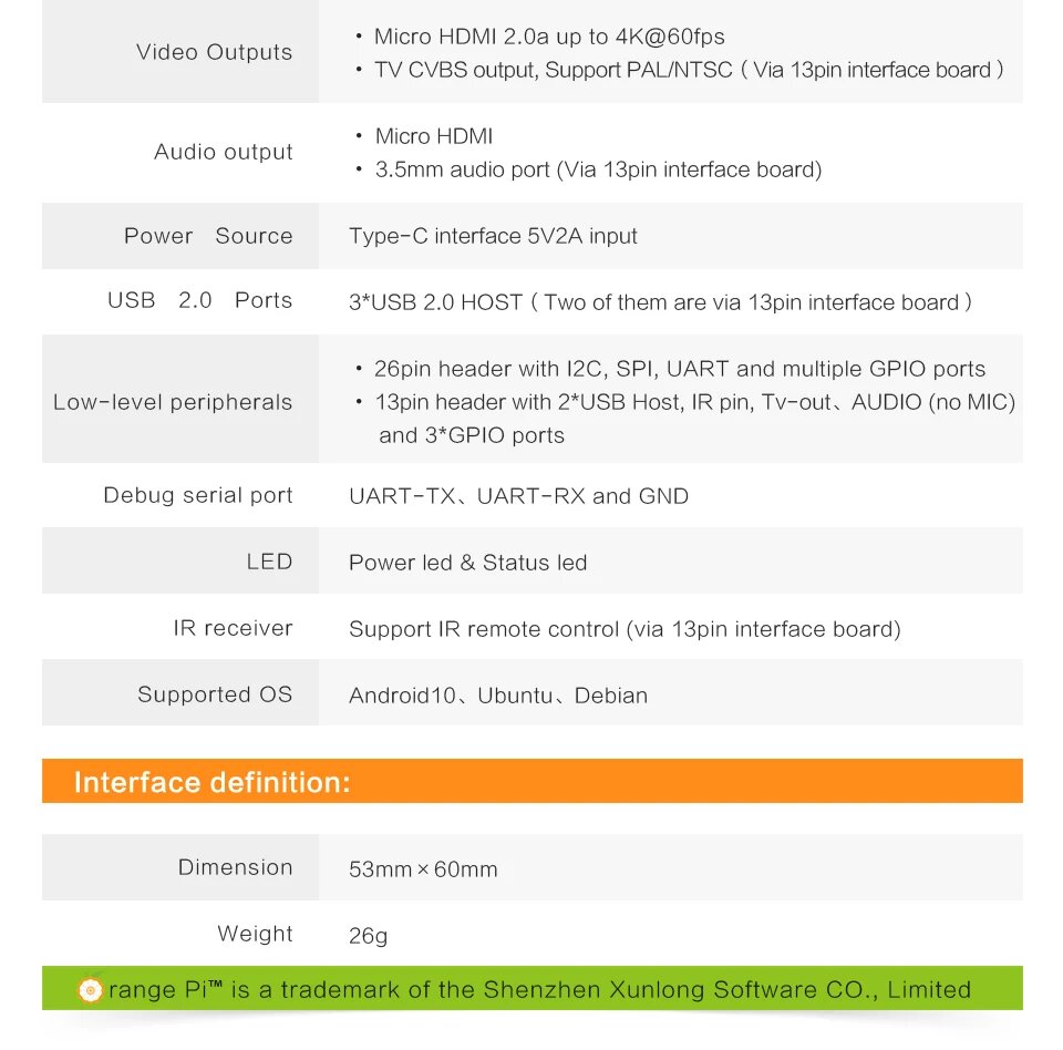 | Бренд | Orange pi |