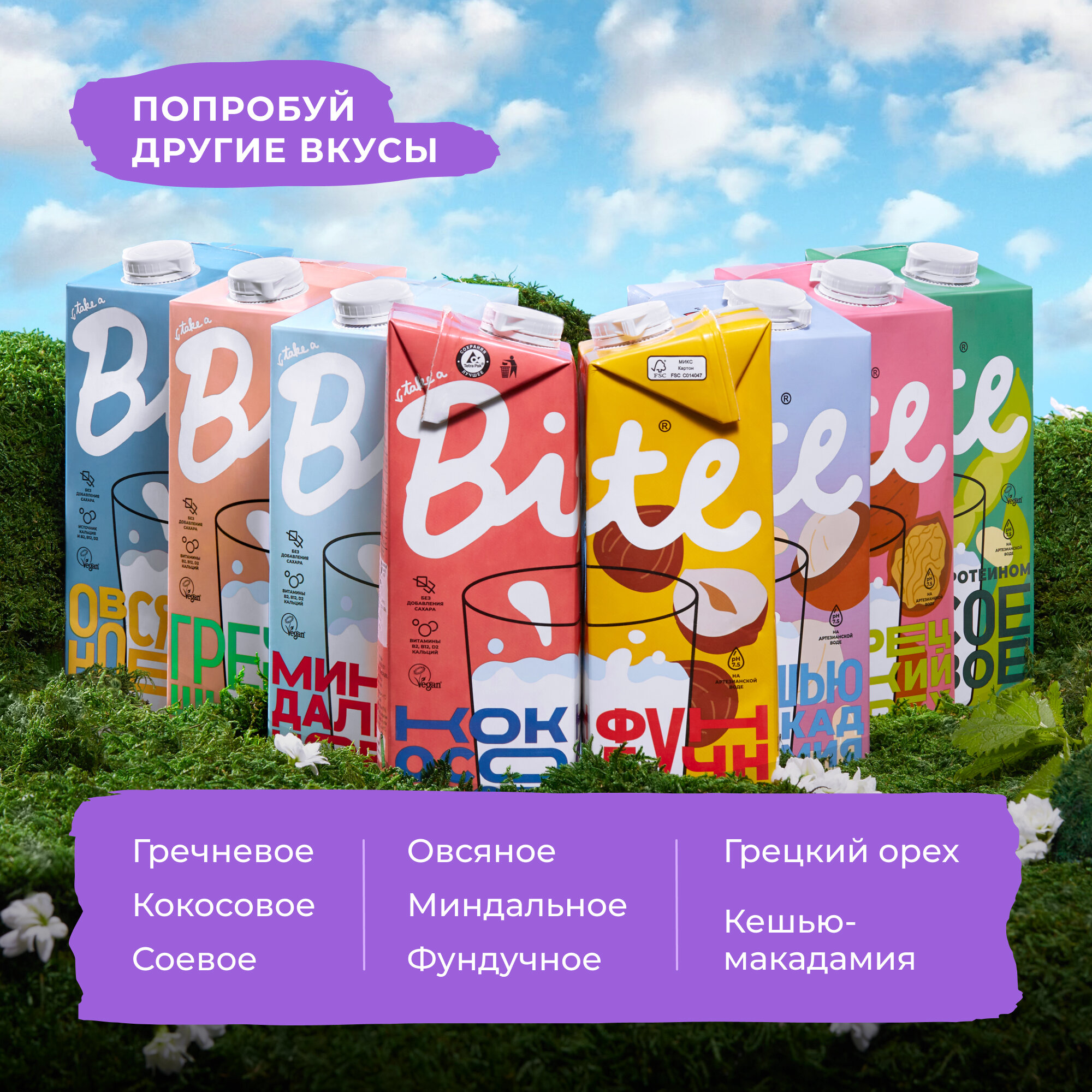 Растительное молоко Take a Bite, ассорти 3 вкусов, без сахара, безлактозное, 3 шт по 1 л