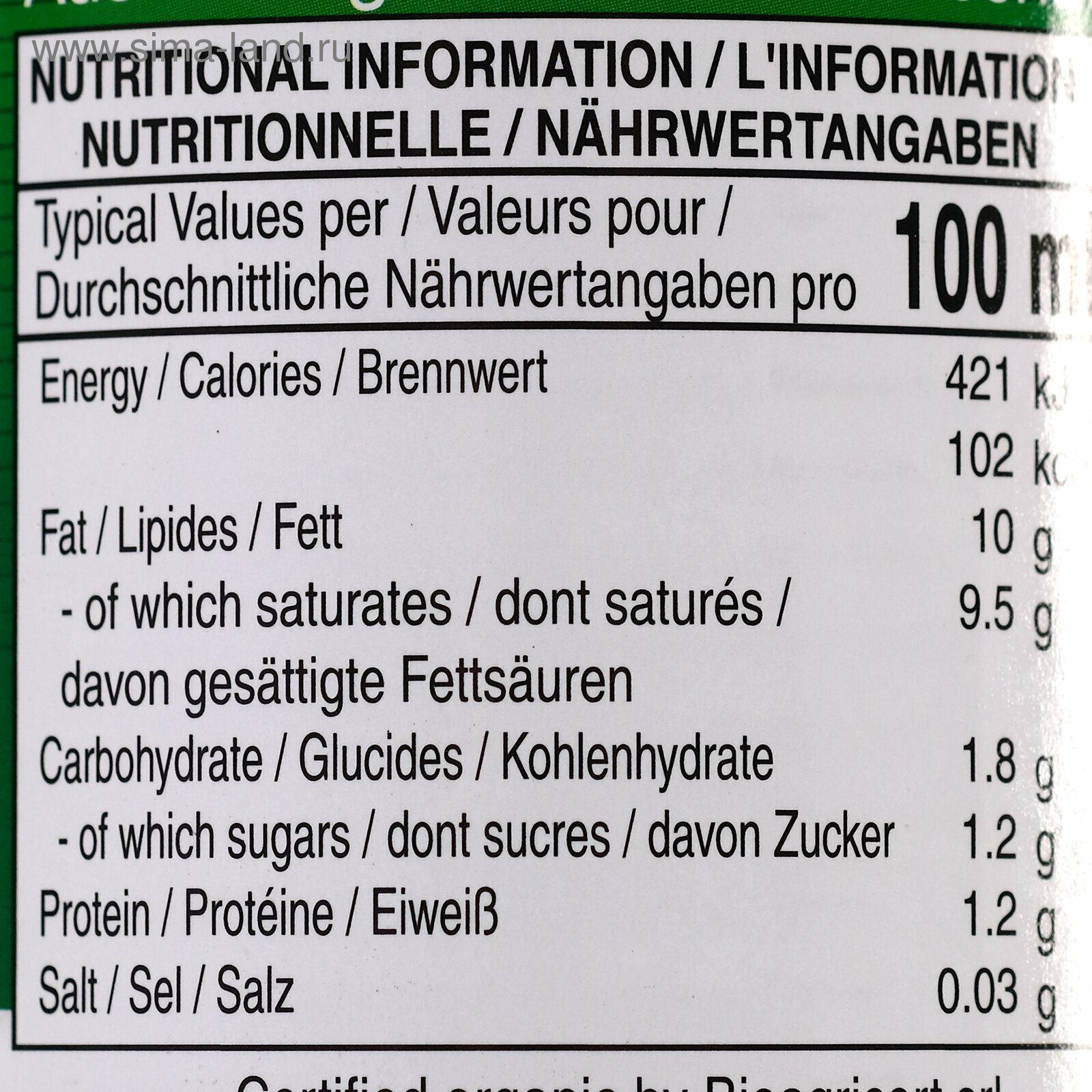 | Органический продукт | есть |