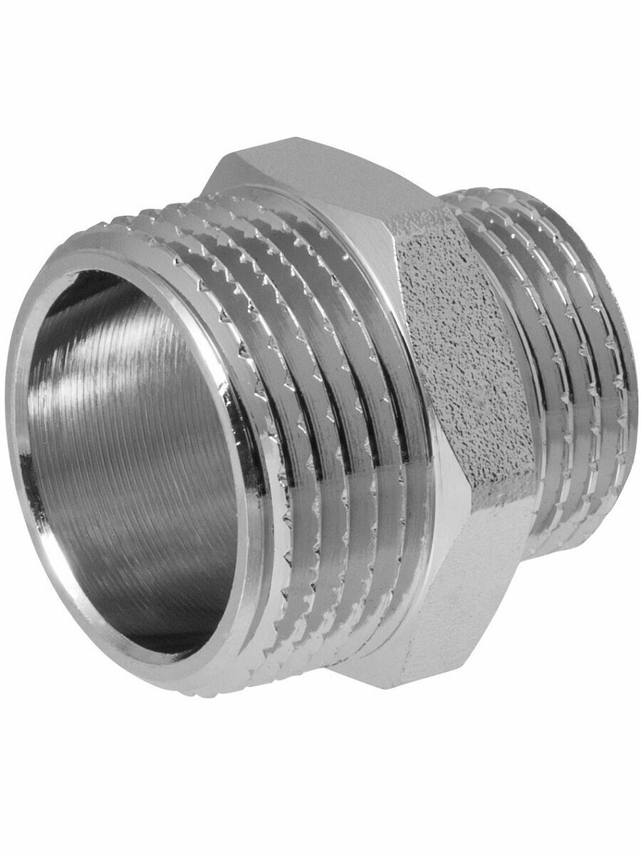 Ниппель - переходник (бочонок) латунный никелированный 1" х 1/2" н/н MPF