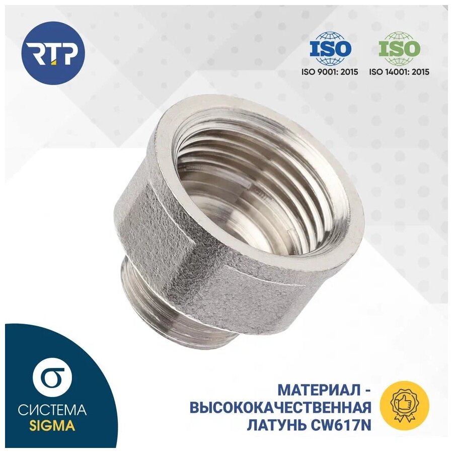 Муфта переходная латунь внутр. резьба 3/4х1/2дюйм никель (инд. упак.) RTP 34903