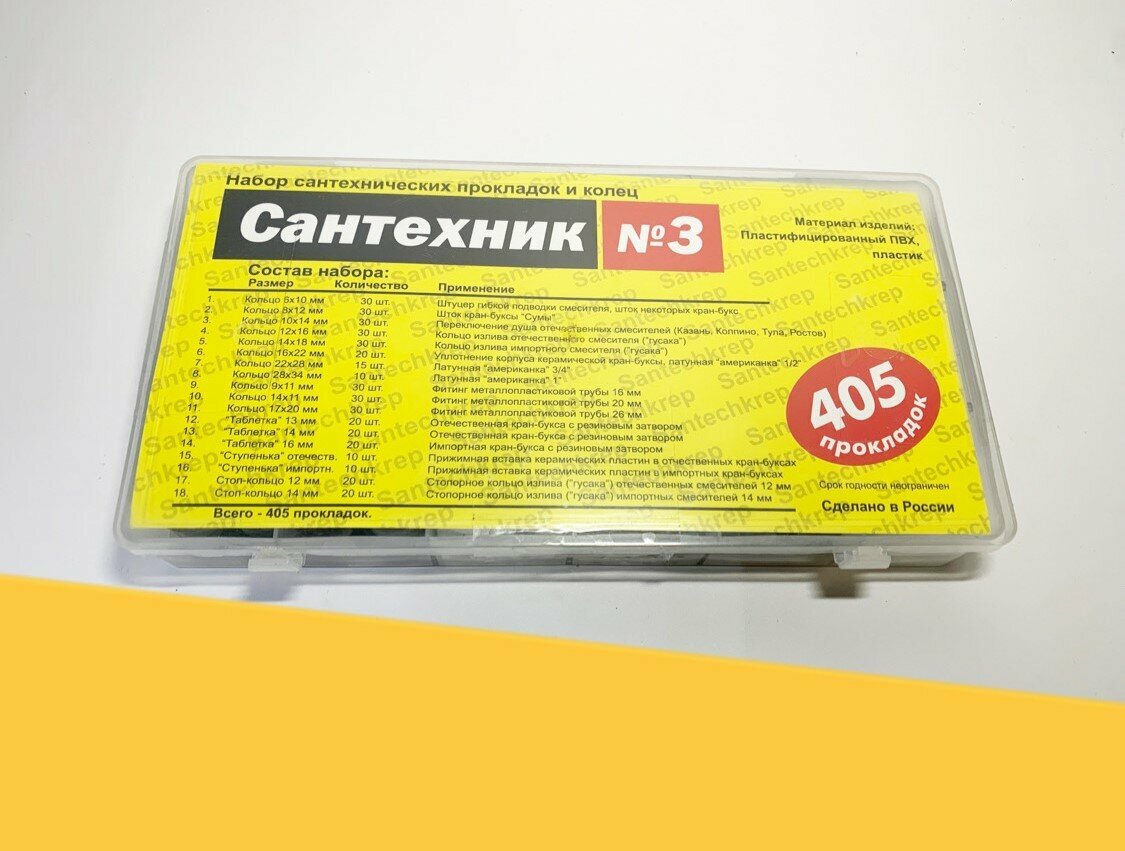 Набор Сантехник № 3 в органайзере (405 прокладок и колец 18 видов) Сантехкреп интересное: