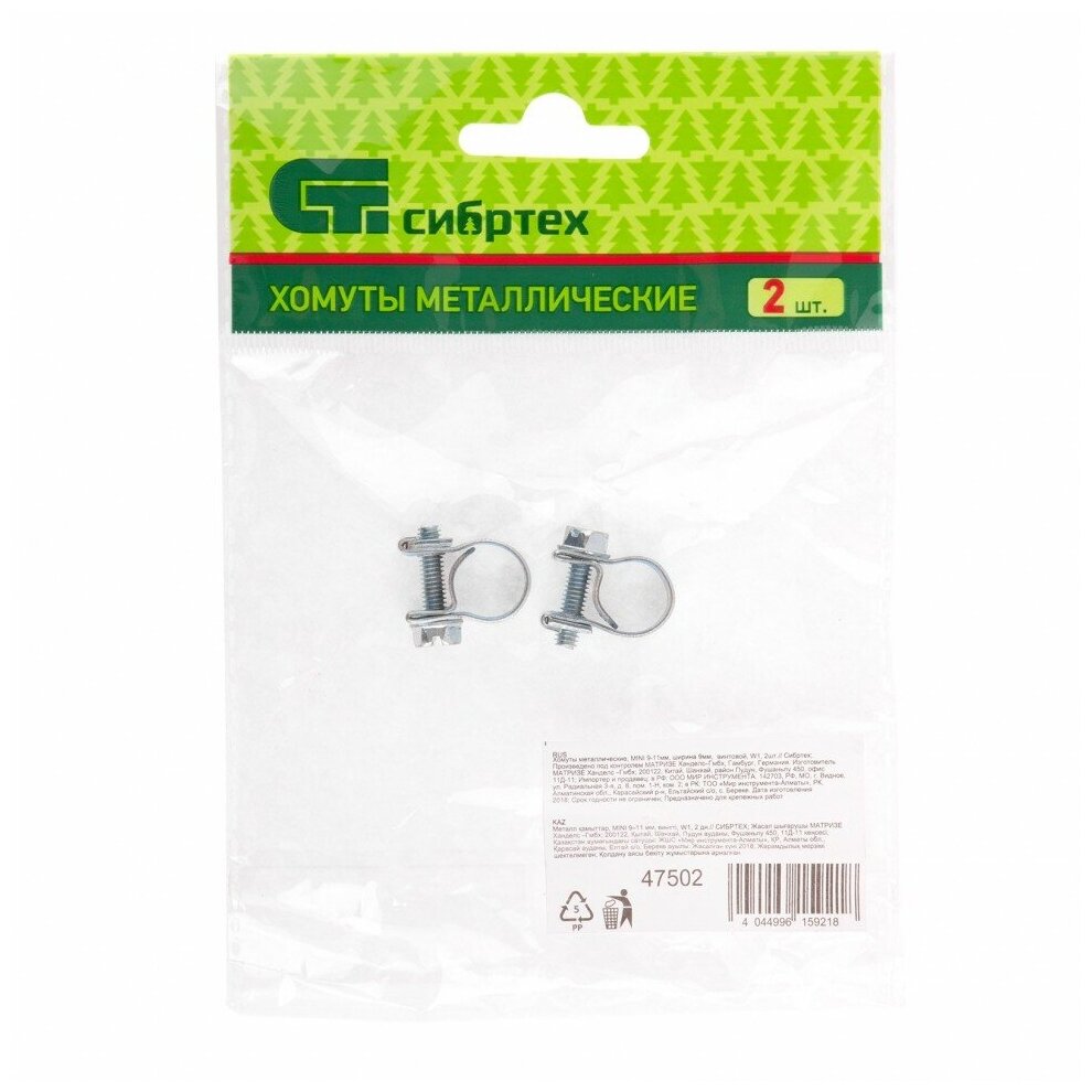 Хомуты металлические, MINI 9-11 мм, ширина 9 мм, винтовой, W1, 2 шт Сибртех 47502