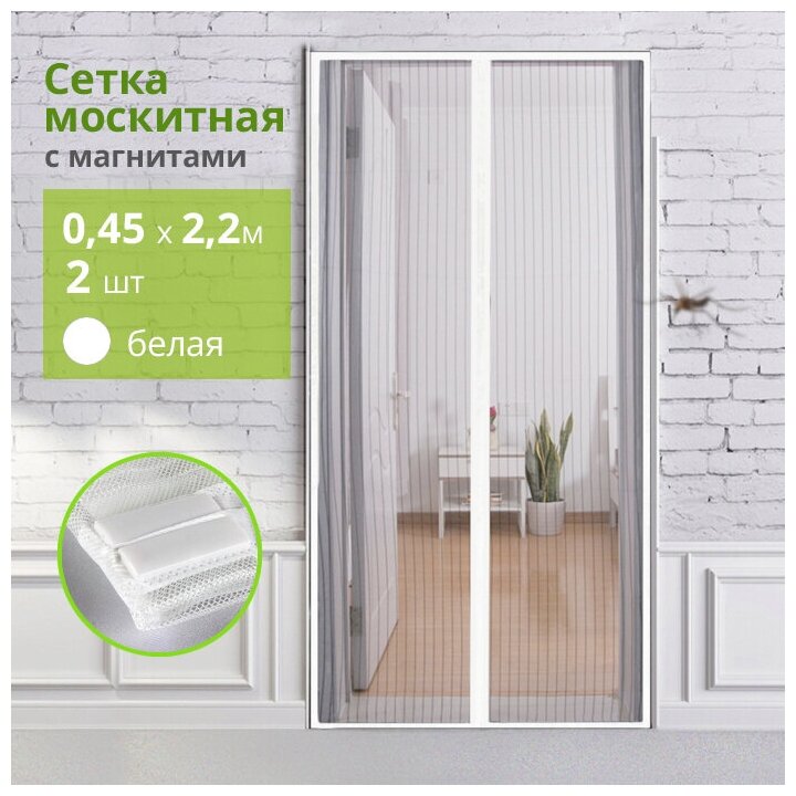 Купить Сетка москитная `PRAKTISCHE` 0,45х2,2м-2штуки для дверного проема с магнитами белая