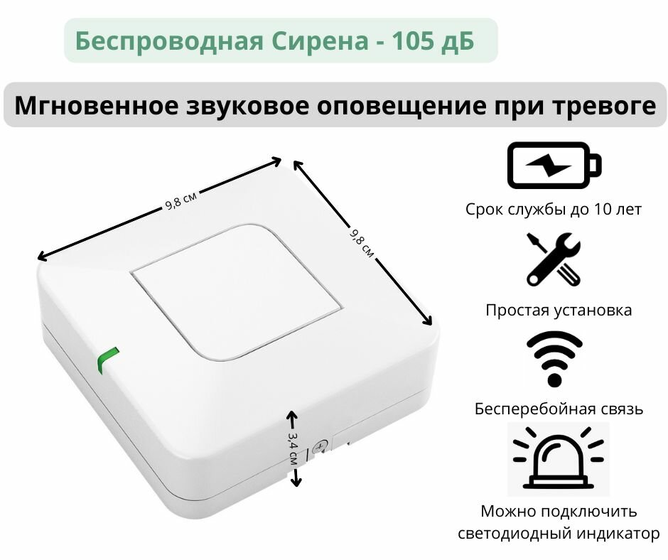 | Дополнительная информация | Можно выбрать уровень громкости «Тихо / Средне / Громко» и длительность звукового оповещения от 10 секунд до 5 минут. |