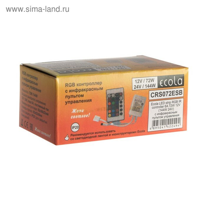 Купить Ecola LED strip RGB IR контроллер 6A 72W 12V (144W 24V) с инфракрасным пультом управления CRS072ESB