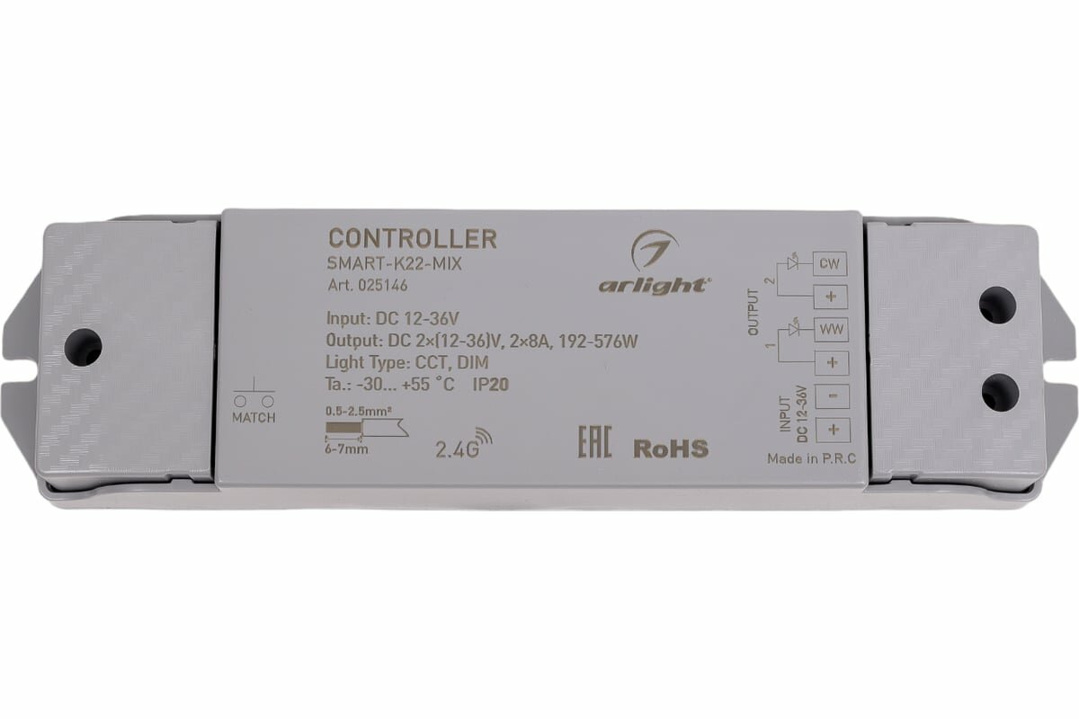 025146 Контроллер SMART-K22-MIX (12-36V, 2x8A, 2.4G) (ARL, IP20 Пластик) интересное: