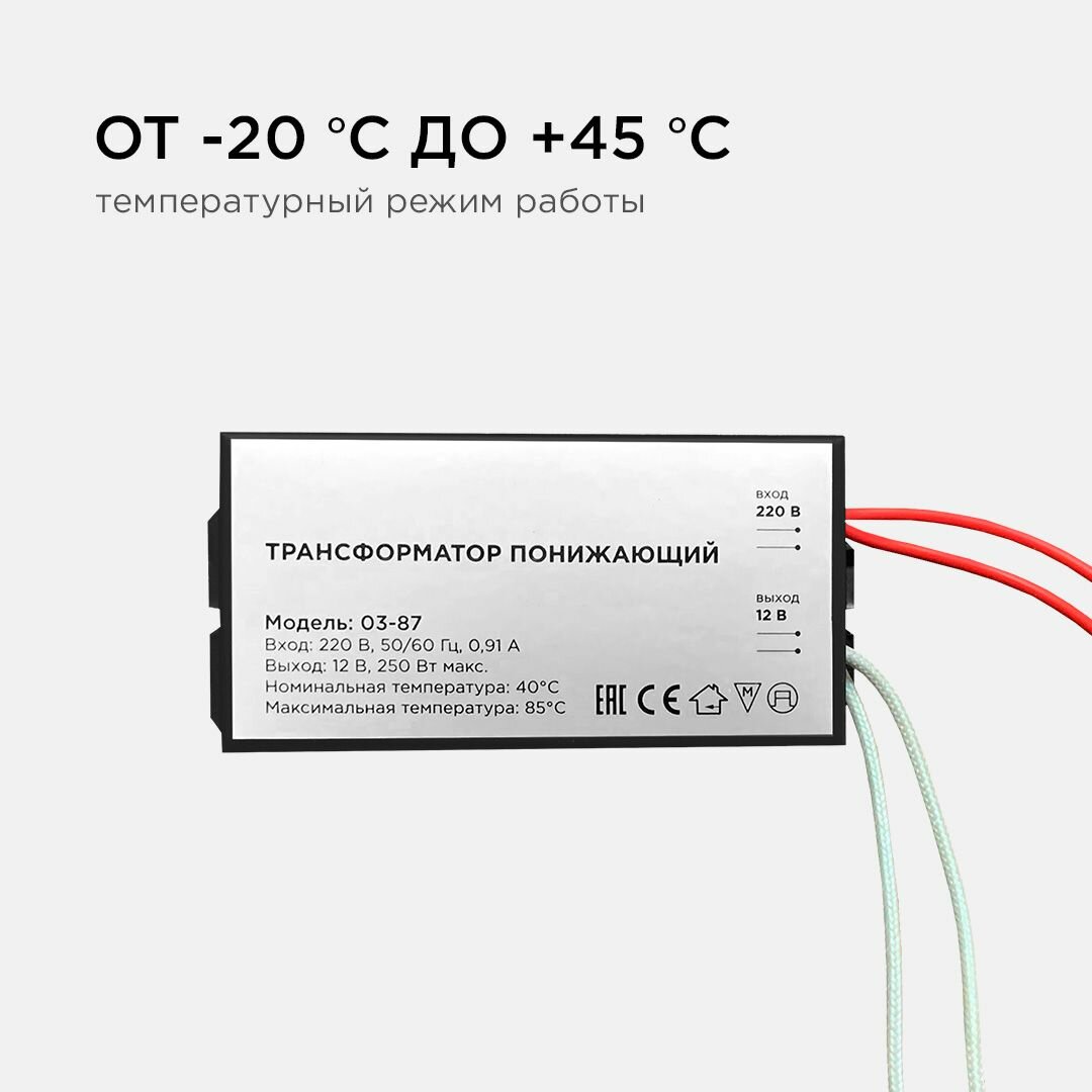Понижающий трансформатор Apeyron 03-87 для галогеновых ламп / 80-250Вт / входное напряжение 220В / AC 12В / IP20