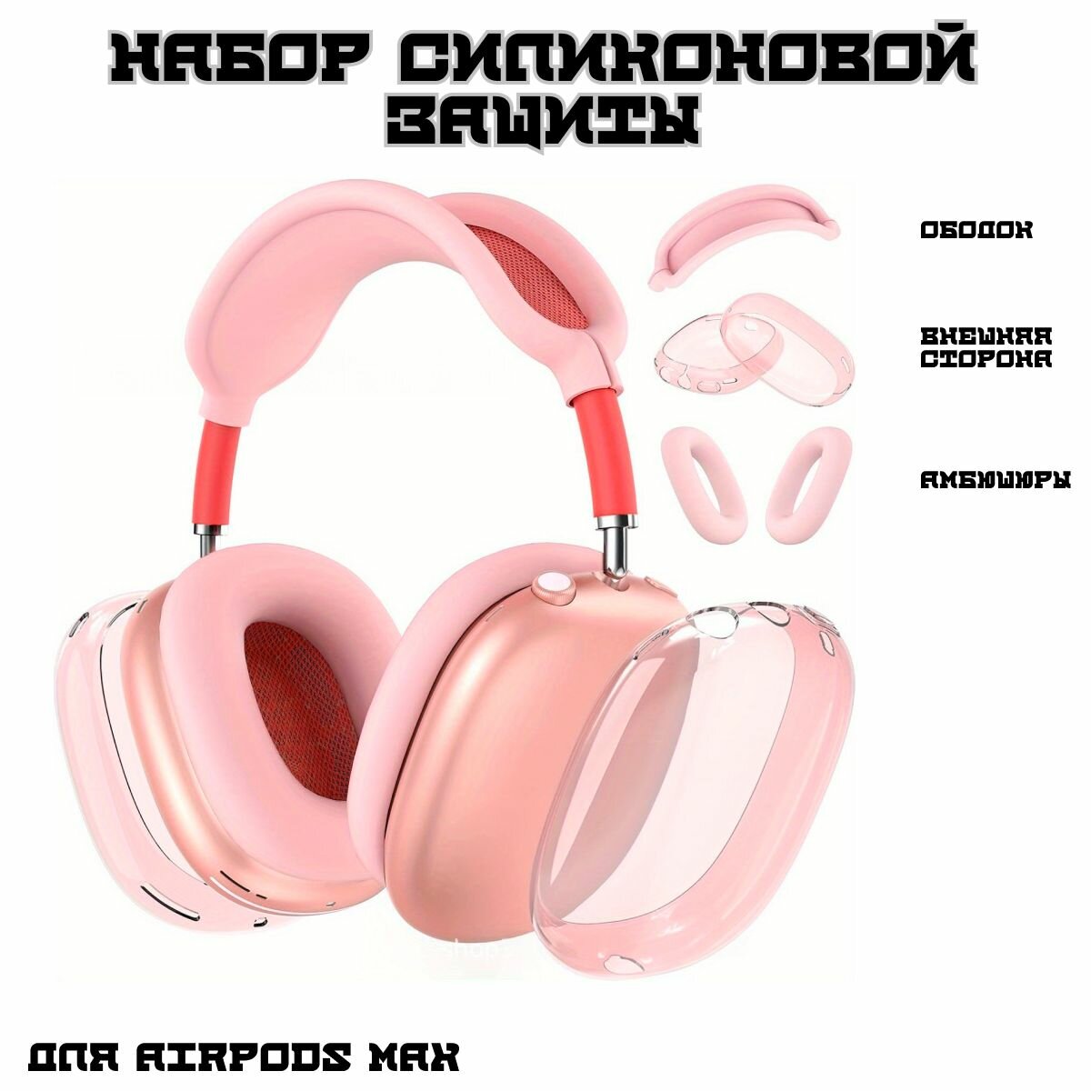 Набор полной защиты для AirPods Max, силиконовый однотонный набор защиты для наушников, розовый