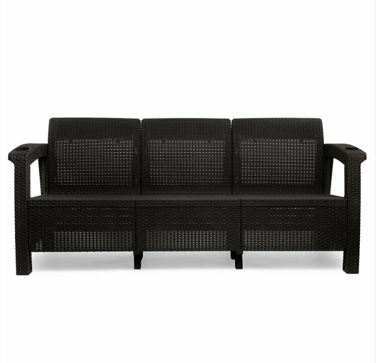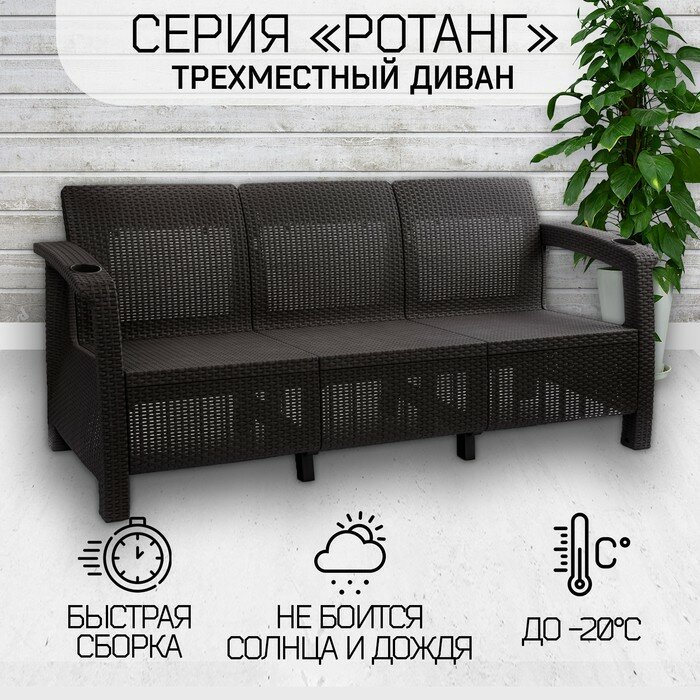 Диван садовый Ротанг, 3-х местный, 181x70x79 см, мокко (подушки коричневого цвета) интересное: