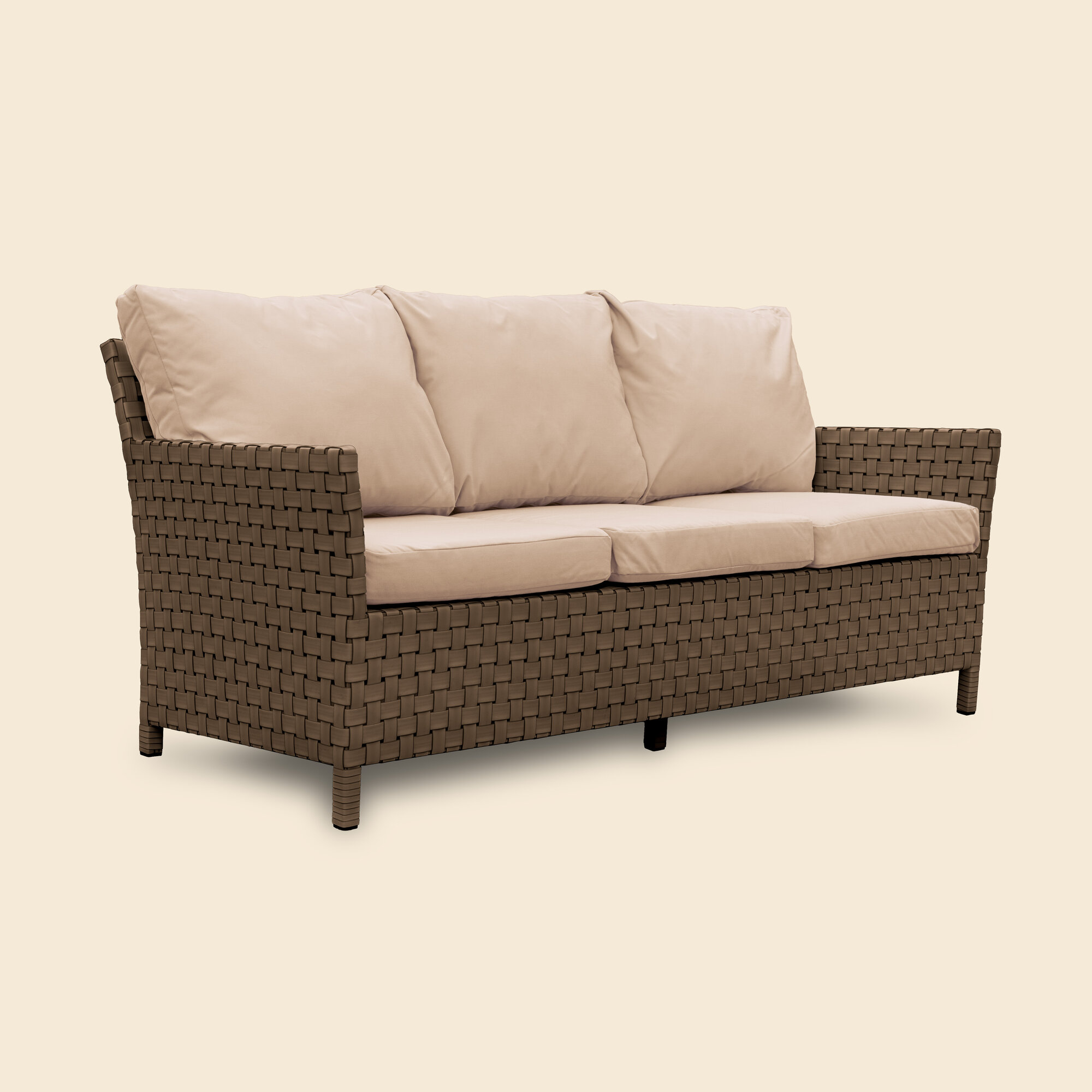 Диван плетеный из ротанга 3-х местный STILO, бежевый, подушки беж