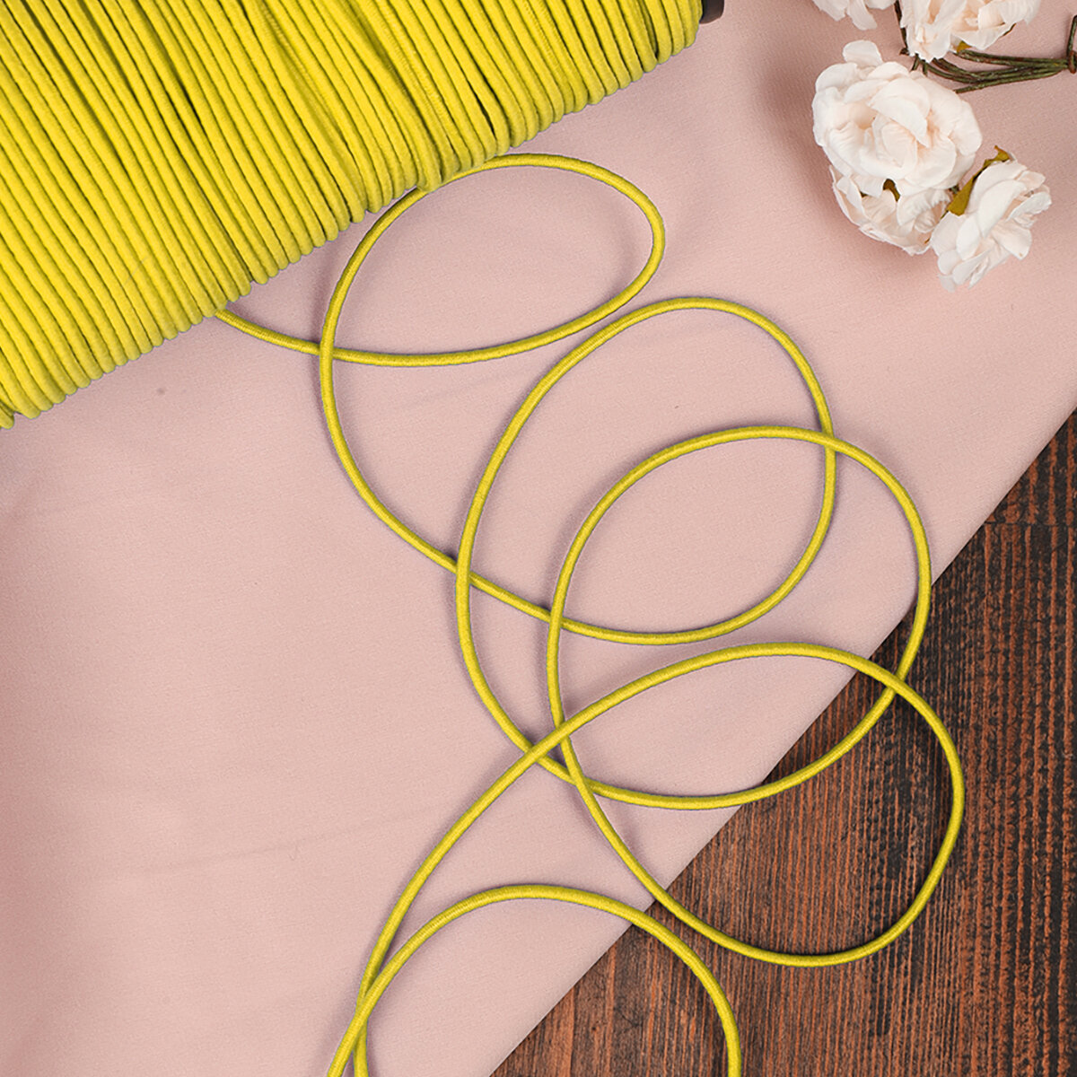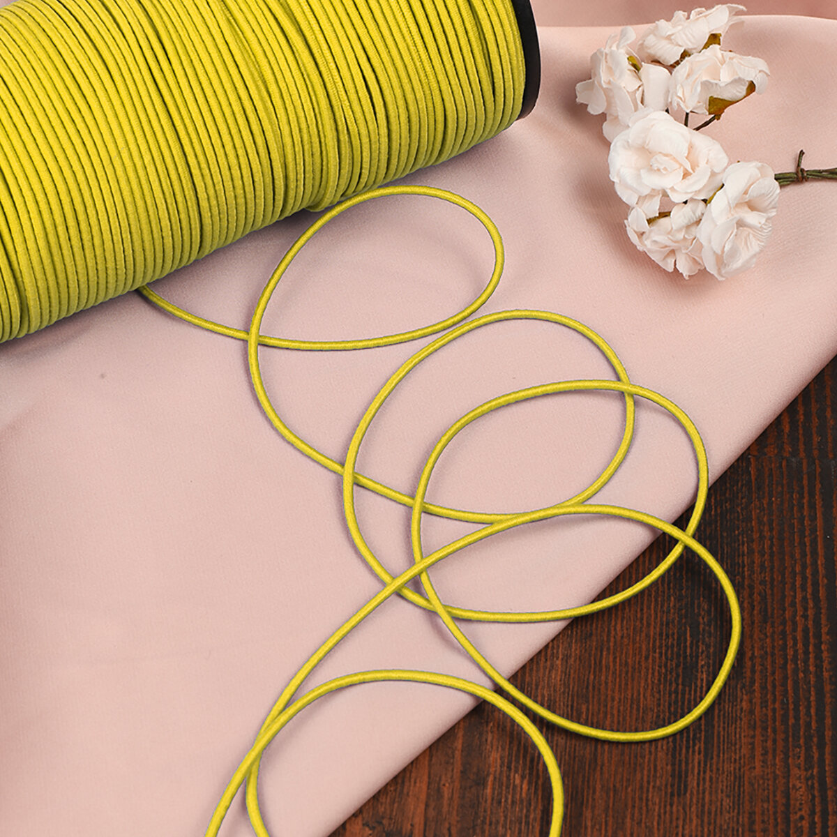 Купить Резинка TBY шляпная (шнур круглый) цв.F110 желтый 2мм рул.100м