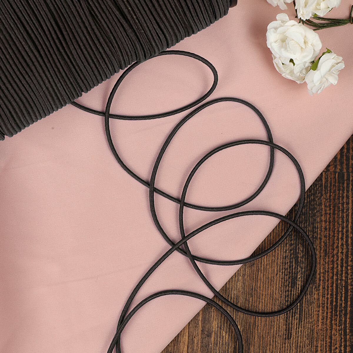 Резинка TBY шляпная (шнур круглый) цв.F322 черный 2мм рул.100м