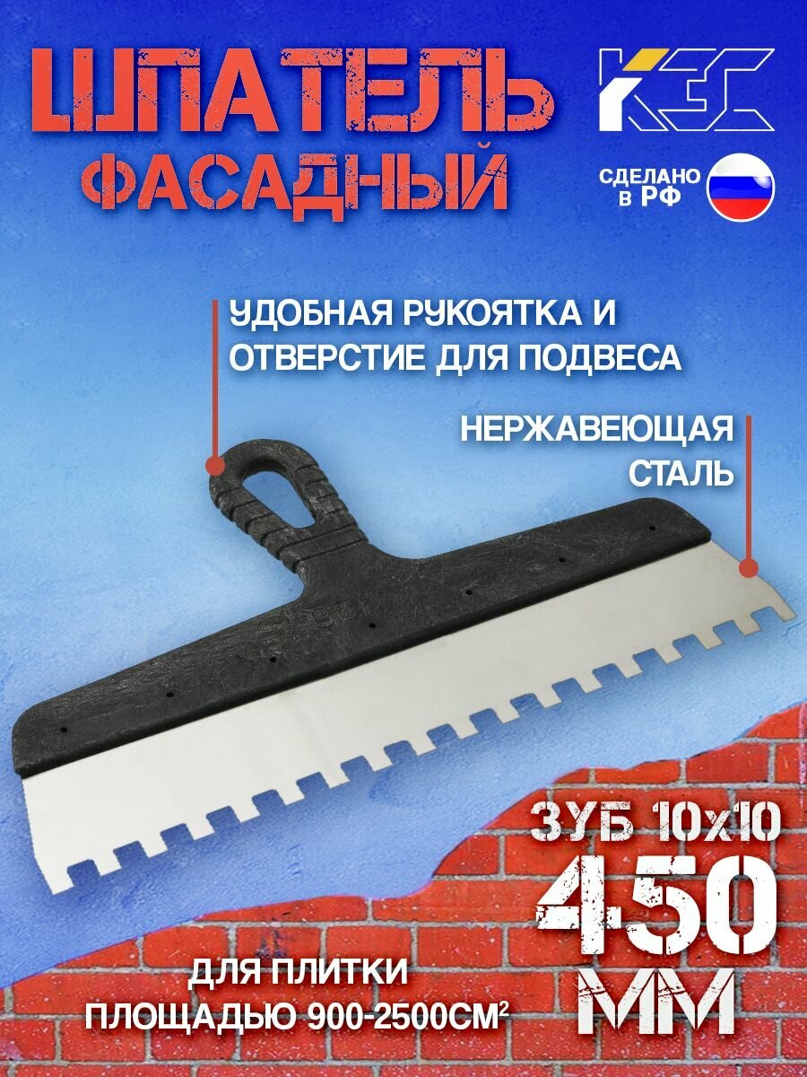 СохранитьКЭС Шпатель зубчатый 10x10 мм, нержавеющая сталь, пластиковая рукоятка, 450 мм 10000058 интересное: