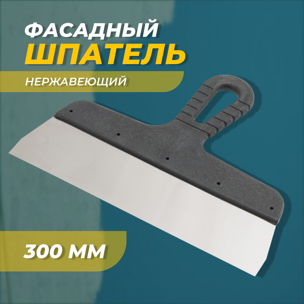 Шпатель фасадный, шпатель строительный из нержавеющей стали, 300 мм, пластмассовая рукоятка