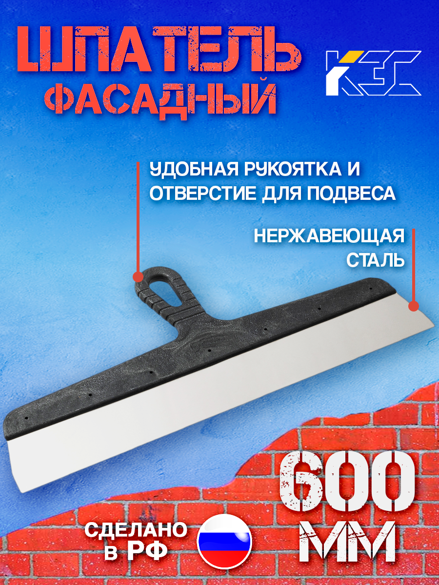 Шпатель фасадный, шпатель строительный из нержавеющей стали, 600 мм, пластиковая рукоятка