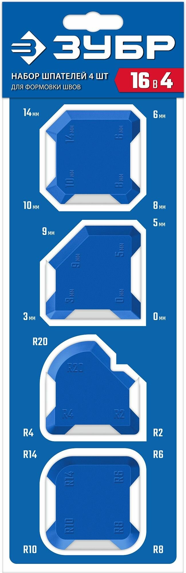 ЗУБР в наборе, 4 шт, 16 профилей, специальные шпатели для формовки швов, Профессионал (1015-H4)